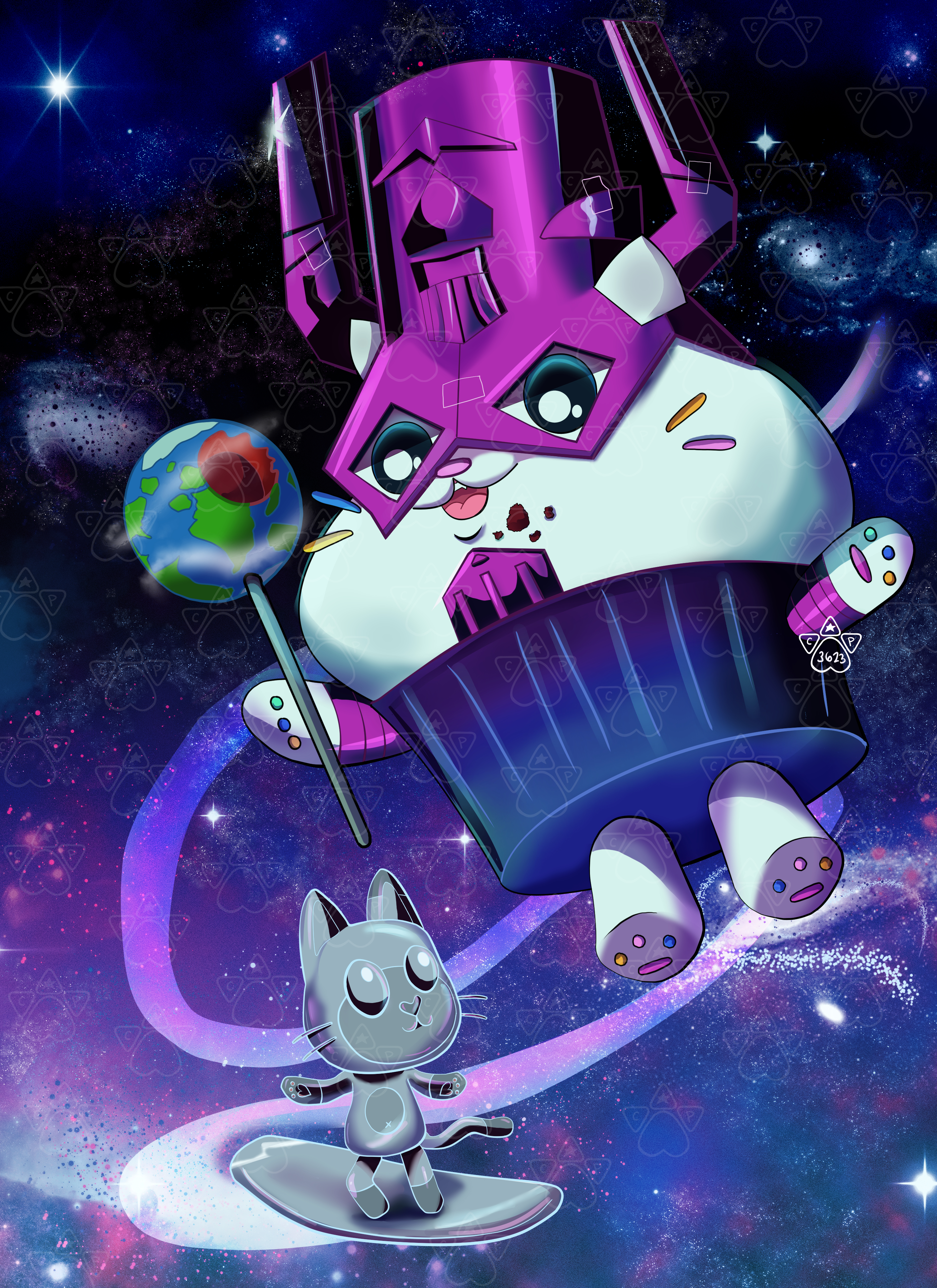 I have a kid and they are into Gabbys Doll House. Watching one of the episodes they had a story about Pandy Paws surfing in the stars and this art was born! Cakey has the cake pop Earth since he's the cooking cat in the show. He love desert. Pandy Paws is Gabby's bff sidekick.I have a kid and they are into Gabbys Doll House. Watching one of the episodes they had a story about Pandy Paws surfing in the stars and this art was born! Cakey has the cake pop Earth since he's the cooking cat in the show. He love desert. Pandy Paws is Gabby's bff sidekick.0 Comments 0 Shares 3 Views
