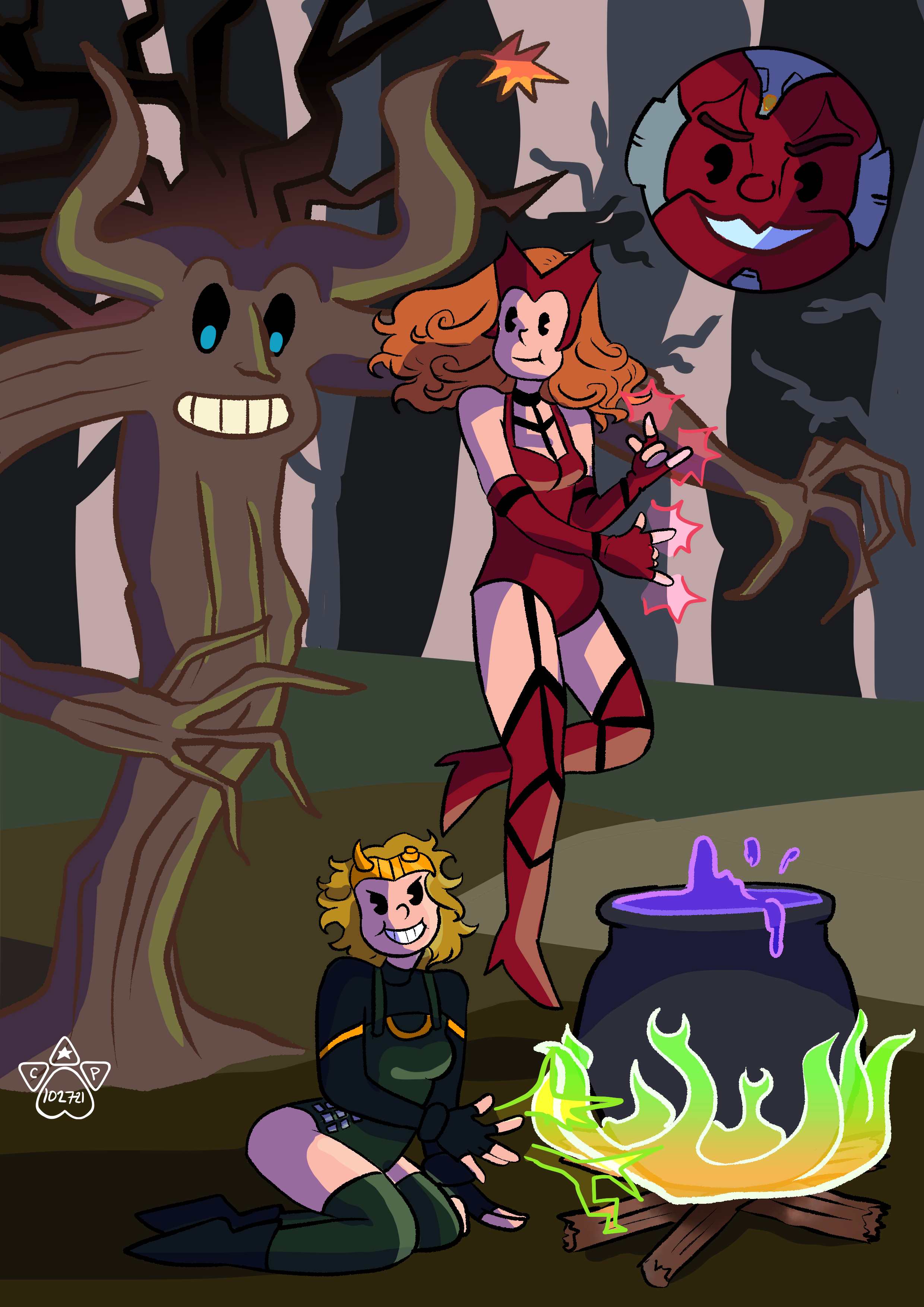 Ok its not Halloween for months I know but I wanted to share it here. This is Wanda and Sylvie as witches (in rubber hose style) with Vison as the moon and Loki as a tree. I'd like to minimaly animate this someday but for now I still love this illo. It's a style that I seem to be natural at,lol.Ok its not Halloween for months I know but I wanted to share it here. This is Wanda and Sylvie as witches (in rubber hose style) with Vison as the moon and Loki as a tree. I'd like to minimaly animate this someday but for now I still love this illo. It's a style that I seem to be natural at,lol.0 Comments 0 Shares 4 Views