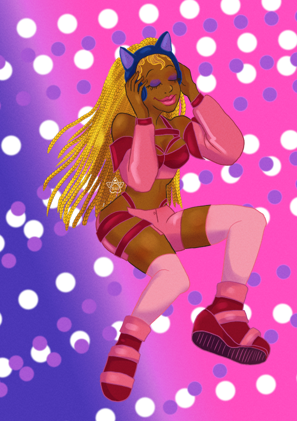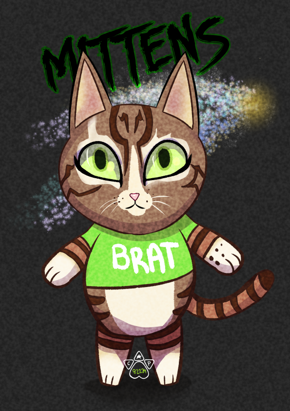 Been a while since I drew anything one off and here it is my friends baby girl cat Mittens having a BRAT summer as a ANCH chibi