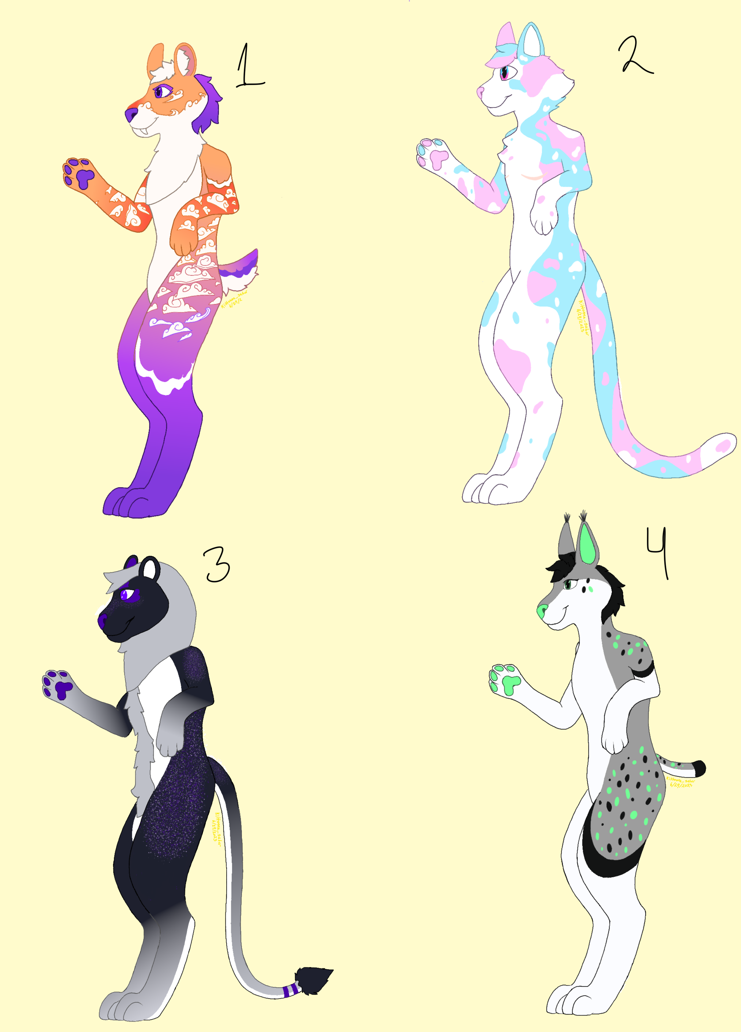Tier 4) Two view ref sheet, front and back with simple background. $89.29USD/$118CADHappy Pride Month Everyone! 🤍🩷🩵🤎🖤❤️🧡💛💚💙 🤍These kitties might have taken longer to get here but they are ready to go to a new loving home! The adopts are tiered adopts so you can claim a commission slot with your adopt. All prices are in usd and cad but when purchased it will accepted in cad. I except paypal and e-transfer. Must be 16+ to purchase if under 18 must have guardian permission. Dm to claim must pay in full with in 24hrs 🩷Adopt & prices (Just for the adopt): 1) $12.11USD/$16CAD 2) $12.11USD/$16CAD 3) $11.35USD/$15CAD 4) $11.35USD/$15CAD—Claimed 🩵Tiers (adopt +) & prices: Tier 1) Headshot, with semi complex background, color and shadded-$31.78USD/$42CAD Tier 2) Bustshot with, semi complex background, color and shadded-$39.35USD/$50CAD Tier 3) Full body with semi complex background, color and shadded-$54.48USD/$72CAD Tier 4) Two view ref sheet, front and back with simple background. $89.29USD/$118CAD0 Comments 0 Shares 4 Views -