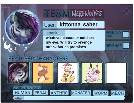 [Artfight profile ](https://artfight.net/~kittonna_saber )Time for artfight! I am ready to let loose and attack yall. Though just fyi I've been busy this year. So, I may not get to as many as I typically do. But I really wanna go ham now that I have a drawing tablet ^w^ [Artfight profile ](https://artfight.net/~kittonna_saber )0 Comments 0 Shares 6 Views -