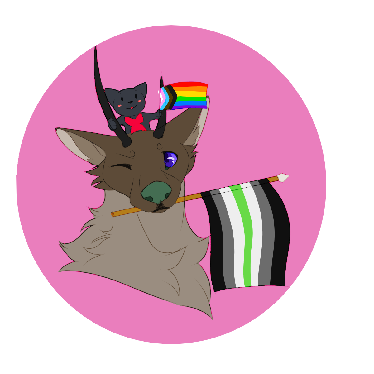 bo and dallas (thats me !) are both agender! whoda thunk? dallas letting bo use their horn as a flag mast is everything to me CREDIT FOR BO'S DESIGN: https://inkblotapp.info/#bo-guide / Hellnuhound link to post about the badge and rules: https://inkblot.art/post/vSBn05xlhDSRoB4kVRce0 Comments 0 Shares 8 Views -