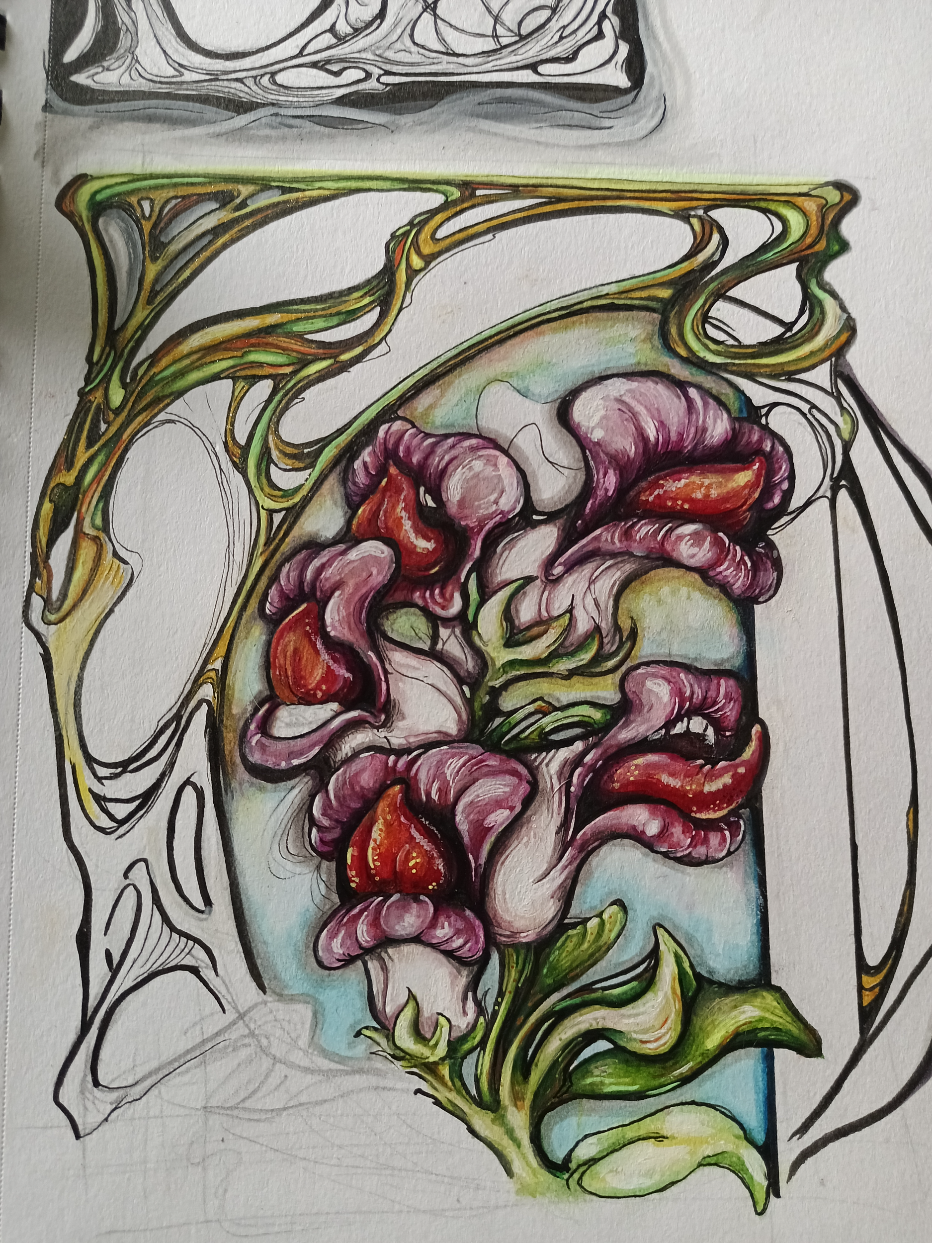 He's not pissing me off intentionally and honestly not the only dude who's hinted the same thing. Past discussions and actual art history hint that anything I say won't change that. So now I'm channeling my annoyance by angry drawing grotesquely sexed up or fleshy flowers. Leaning new textures and techniques as I go! My buddy didn't like them, in the best way possible. So mission accomplished!For 3 years a good buddy of mine in the media arts has compared my springtime nouveau-ish shapes to O'Keeffe's flower paintings in the worst way possible. Cuz you know, she just looooved critics summing up the whole of her as the lady who paints the lady bits flowers. Between that and critics talking/writing on her work in comparison to her companion (Alfred Stieglitz) I can only imagine the frustration Georgia O'Keeffe went through. He's not pissing me off intentionally and honestly not the only dude who's hinted the same thing. Past discussions and actual art history hint that anything I say won't change that. So now I'm channeling my annoyance by angry drawing grotesquely sexed up or fleshy flowers. Leaning new textures and techniques as I go! My buddy didn't like them, in the best way possible. So mission accomplished!0 Comments 0 Shares 10 Views -