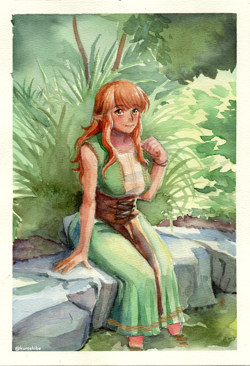 Materials used: Holbein Watercolours, Daniel Smith Watercolours, Coliro Moon Gold, Crayola coloured pencils, Baohong cold pressed paperIt's been a while since I've uploaded anything here I've been kind of unwell? but I'm better now, so I'm hoping to upload more Anyway, here is my OC sitting on the edge of a pond. I felt like pulling out my old watercolours ^^ Materials used: Holbein Watercolours, Daniel Smith Watercolours, Coliro Moon Gold, Crayola coloured pencils, Baohong cold pressed paper0 Comments 0 Shares 10 Views -