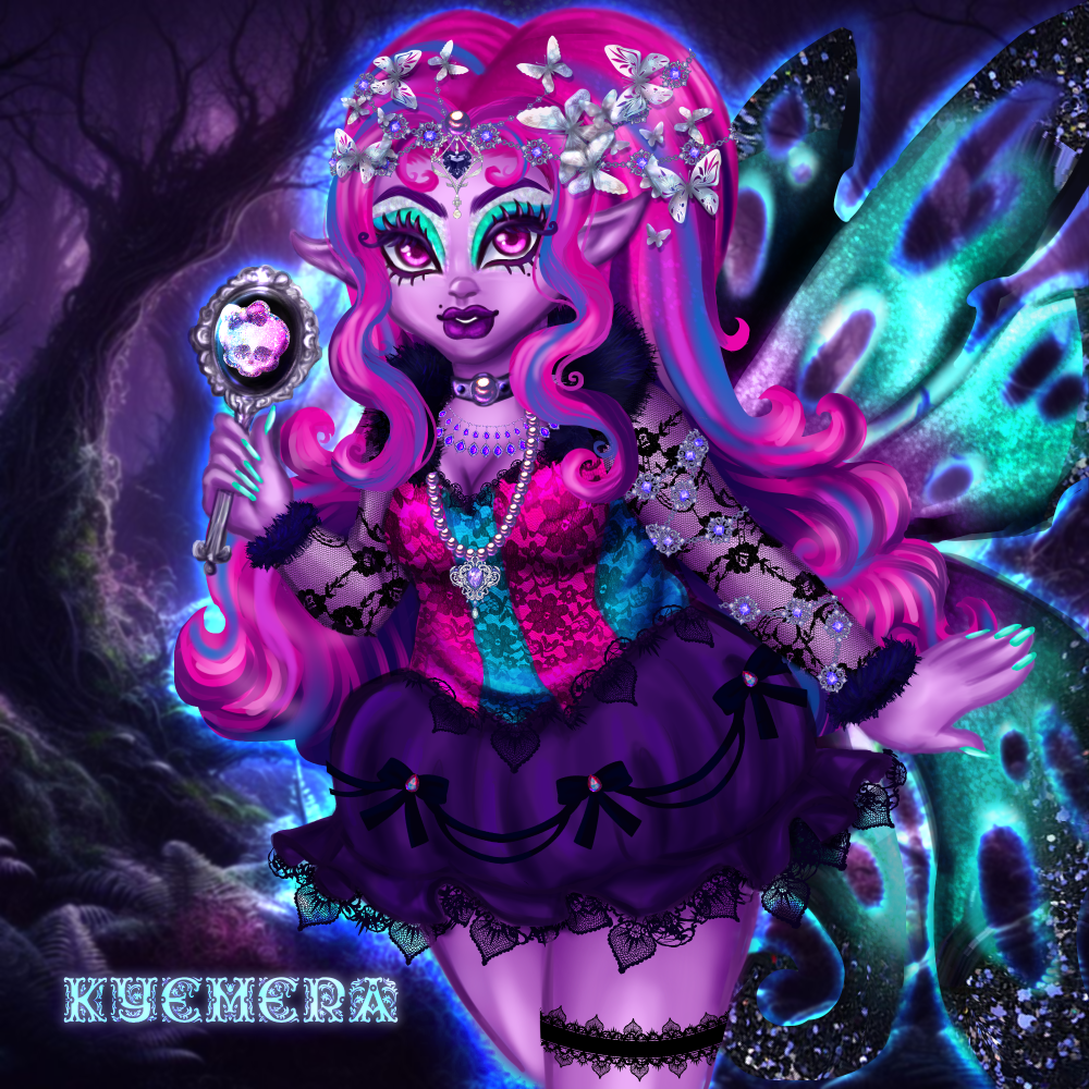 • Needed a break between the raffle prizes to work on my own ****. I was fucking around with bing ai one day and it made this super cute girl that I had to make a full oc design out of it. She has like all my favorite colors in her palette. Her name is Erazma and she's a dark fairy, and she's plus sized, and the love of my life rn. This was supposed to just be a quick drawing but I got carried away and finally finished it over the course of 3 days. I love this drawing so much and I'm very proud of it.