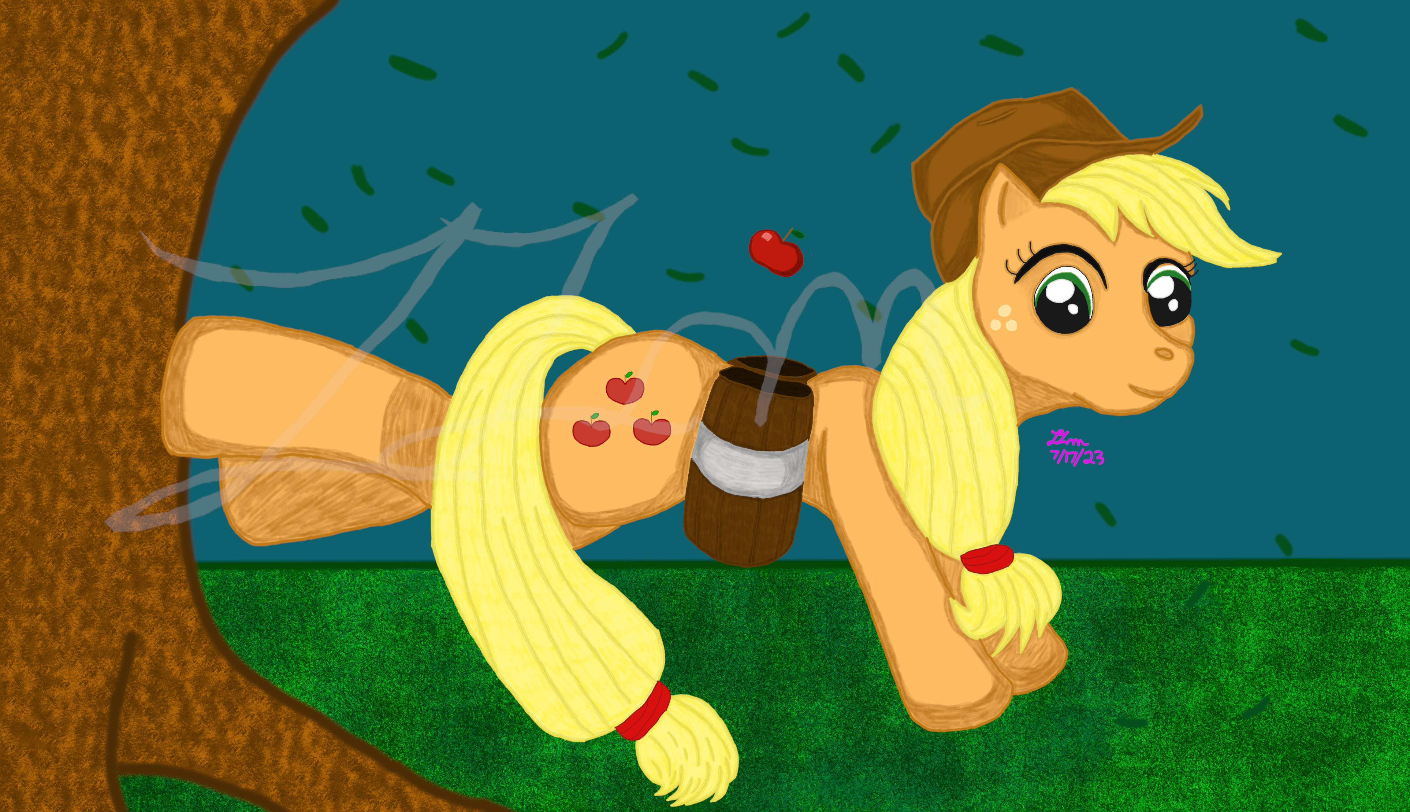 As part of the My Little Pony: Friendship is Magic, art series I decided to draw Applejack knocking apples out of a tree.