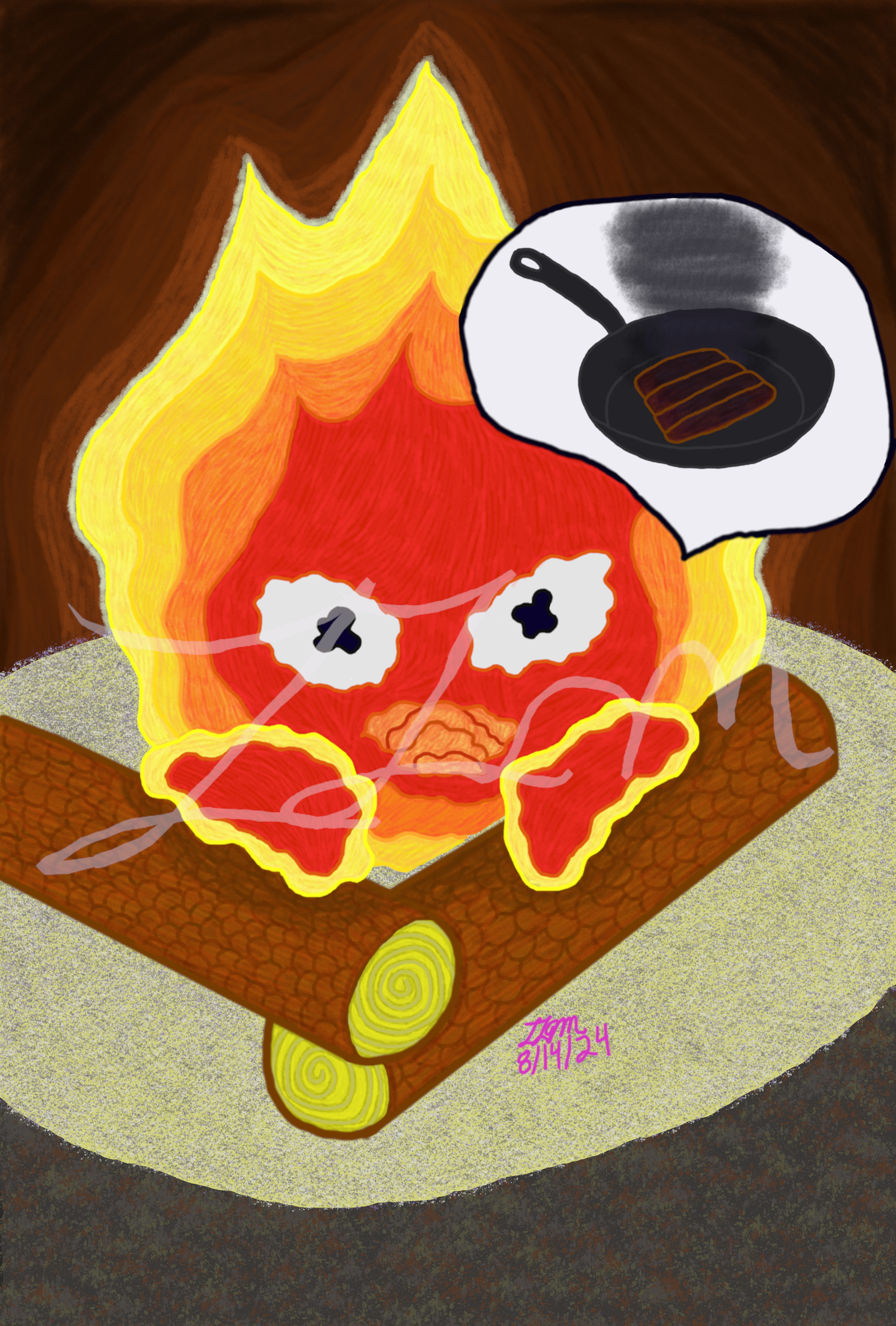 (c) Me"Here's another curse for you---May all your bacon burn!" ~Calcifer the Fire Demon. I had fun making this piece, and if you zoom in you can really see all the different colors I used. I'd highly suggest the bottom, because it looks like a hearth with splatters of color. (C) Diana Wynne Jones, Hayao Miyazaki (c) Me0 Comments 0 Shares 5 Views -