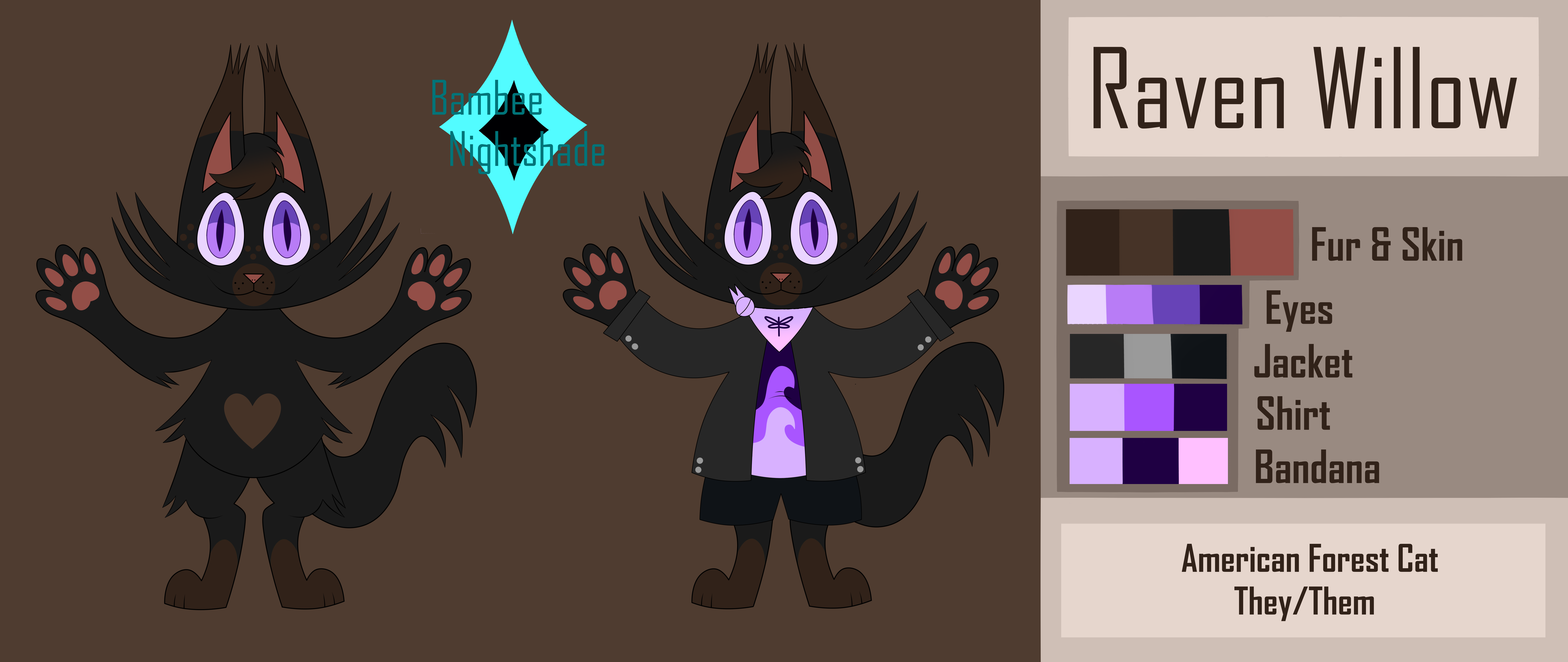 This is a reference sheet for my sona Bambee Nightshade. Also known as my mascot on my social media.