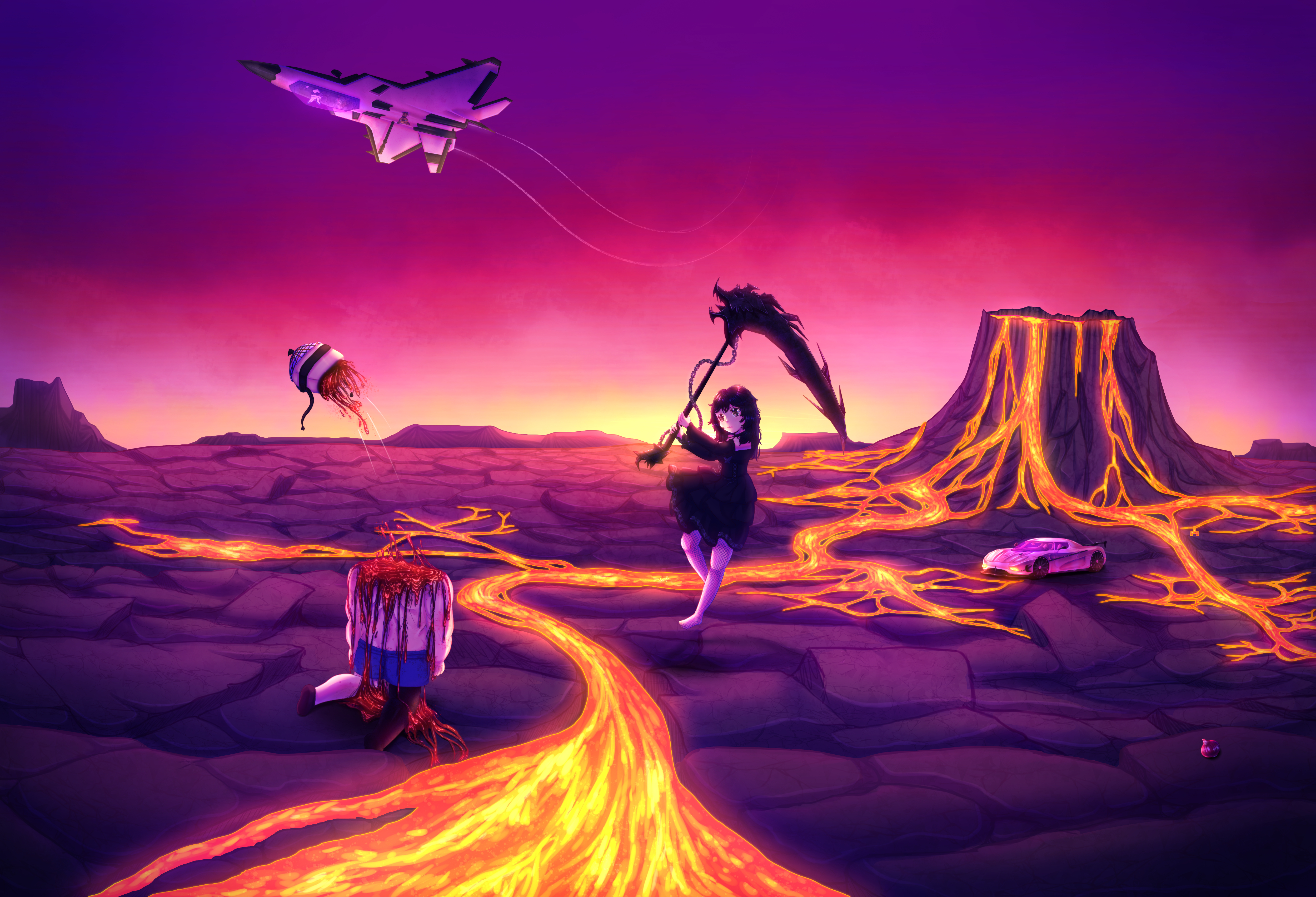 in front of it. To the top left in the sky there's a jet with me and Sassy The Sasquatch who is smoking a blunt. On top of the jet is sitting Littlest pet shop chihuahua #001. At the front there is Marceline who is wearing a black dress and has just beheaded a buff masculine looking character with her scythe. The masculine character is wearing blue shorts, hat and goggles. right leg is burnt. Blood is spilling out from the flying head and from the body and it's flowing into the lava as well.Hiii!!! This artwork took me a long time to finish but I finally did. This is an Comm for a friend of mine. Anyway I hope you like :D Alt text for the image (Trigger warning gore/blood): in front of it. To the top left in the sky there's a jet with me and Sassy The Sasquatch who is smoking a blunt. On top of the jet is sitting Littlest pet shop chihuahua #001. At the front there is Marceline who is wearing a black dress and has just beheaded a buff masculine looking character with her scythe. The masculine character is wearing blue shorts, hat and goggles. right leg is burnt. Blood is spilling out from the flying head and from the body and it's flowing into the lava as well.0 Comments 0 Shares 8 Views