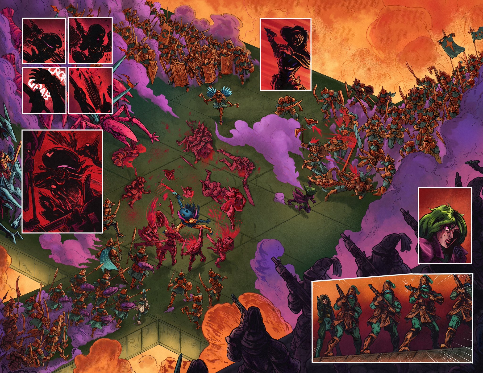 Scifi fantasy featuring witches, power armor and a fair few monsters.2-page spread from my 300 page comic, KWK. Scifi fantasy featuring witches, power armor and a fair few monsters.0 Comments 0 Shares 100 Views -