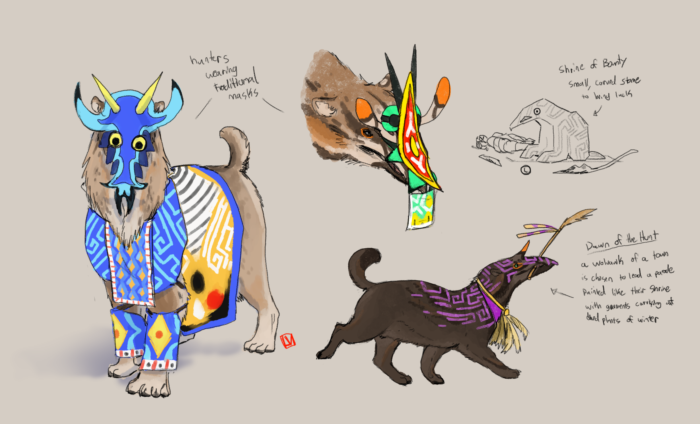 Festival garbs are meant to represent predators and prey alike in parades, feasts and games.Festivals for some wolvawk cultures would most likely celebrate the coming of spring. Since they're carnivores, I would imagine it would be a plentiful time to celebrate the hard time of winter passing and embracing the coming of new life. Festival garbs are meant to represent predators and prey alike in parades, feasts and games.0 Comments 0 Shares 10 Views -