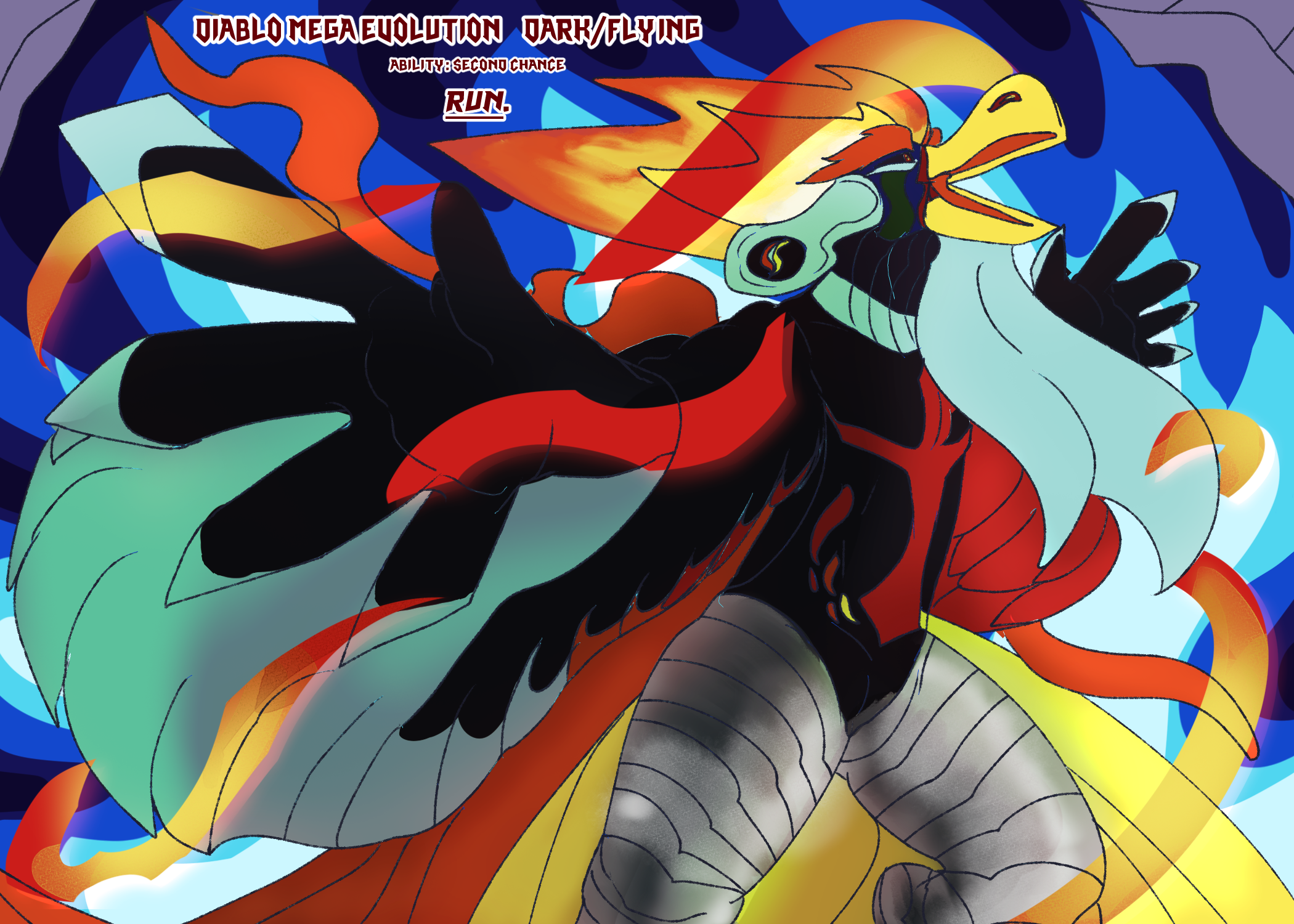 Crossposting this piece to showcase a test design I made for fursona mega evolutions. This one is based off of a character I have- a demonic rooster named Diablo. For a second go around, I think I did great!Crossposting this piece to showcase a test design I made for fursona mega evolutions. This one is based off of a character I have- a demonic rooster named Diablo. For a second go around, I think I did great!0 Comments 0 Shares 13 Views