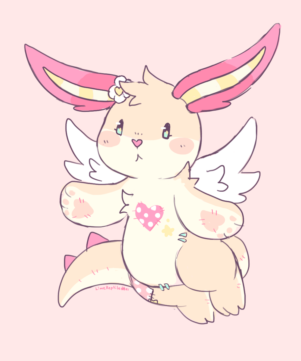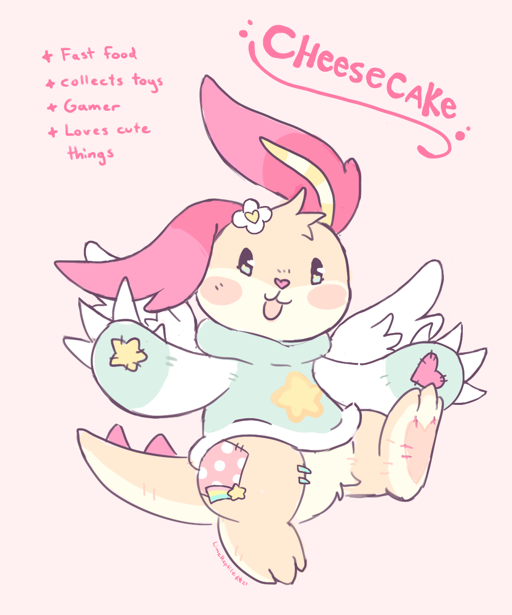 My second sona! This one is a lot more self-indulgent and is reminiscent of stuff I liked as a kid and still like to this day ( neopets, carebears/popples/neopets, video games, collecting early 2000's toys, etc! )