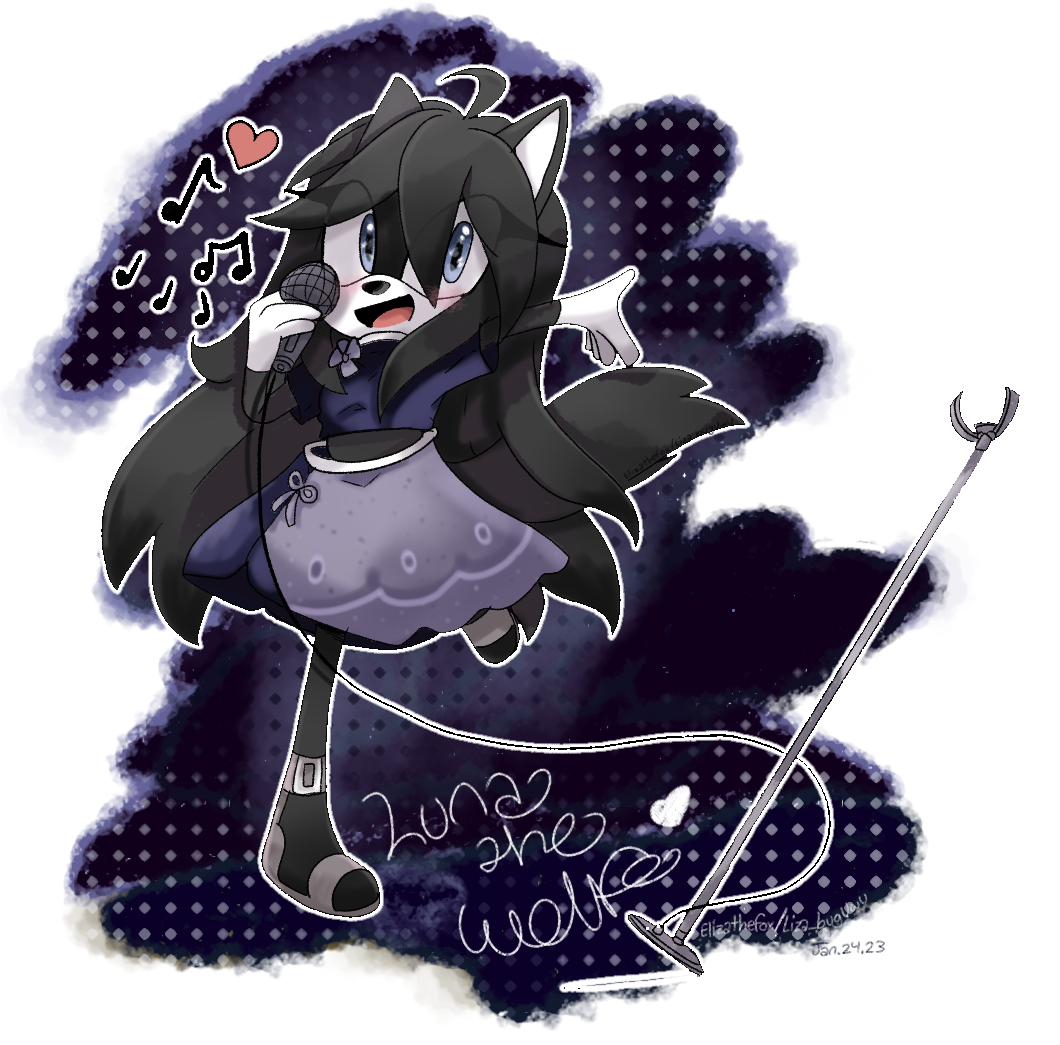 My sonic of, Luna the wolf. I drew her using Ibispaint. (She's wearing gloves, but they look like they're apart of her fur...Anyway.) Enjoy!~