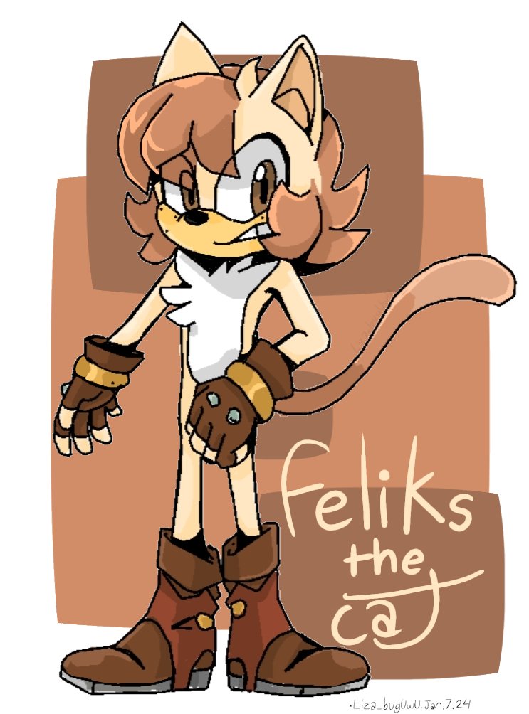 Sonic fan character Feliks the cat, I first made him in picrew sonic maker thingy, then tried to draw him. I drew him in roblox. ^_^;)