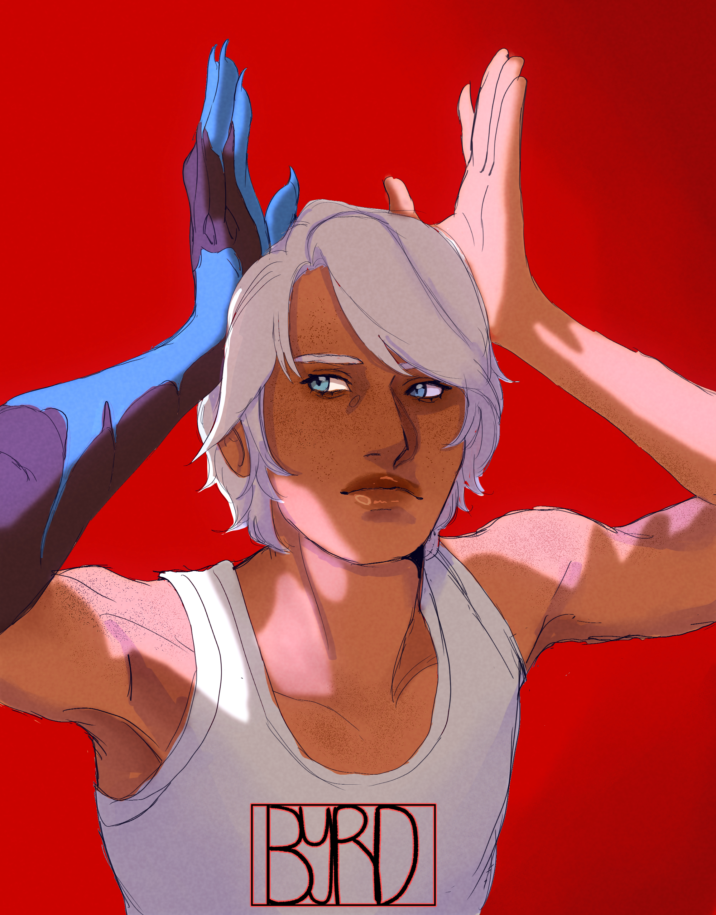 Alt text for screen readers: A drawing of Makima from chainsaw man smiling at the viewer. Her hands are vaguely classed around a very small denji, who is curled up in her palm, with her other hand lingering over him. Slightly concealing him from view. The background is a dark purple. There are chains behind Makima. The entire image is a mixture of purple, yellow, and orange. My signature is in the bottom right corner stating Byrd in all caps.0 Comments 0 Shares 5 Views