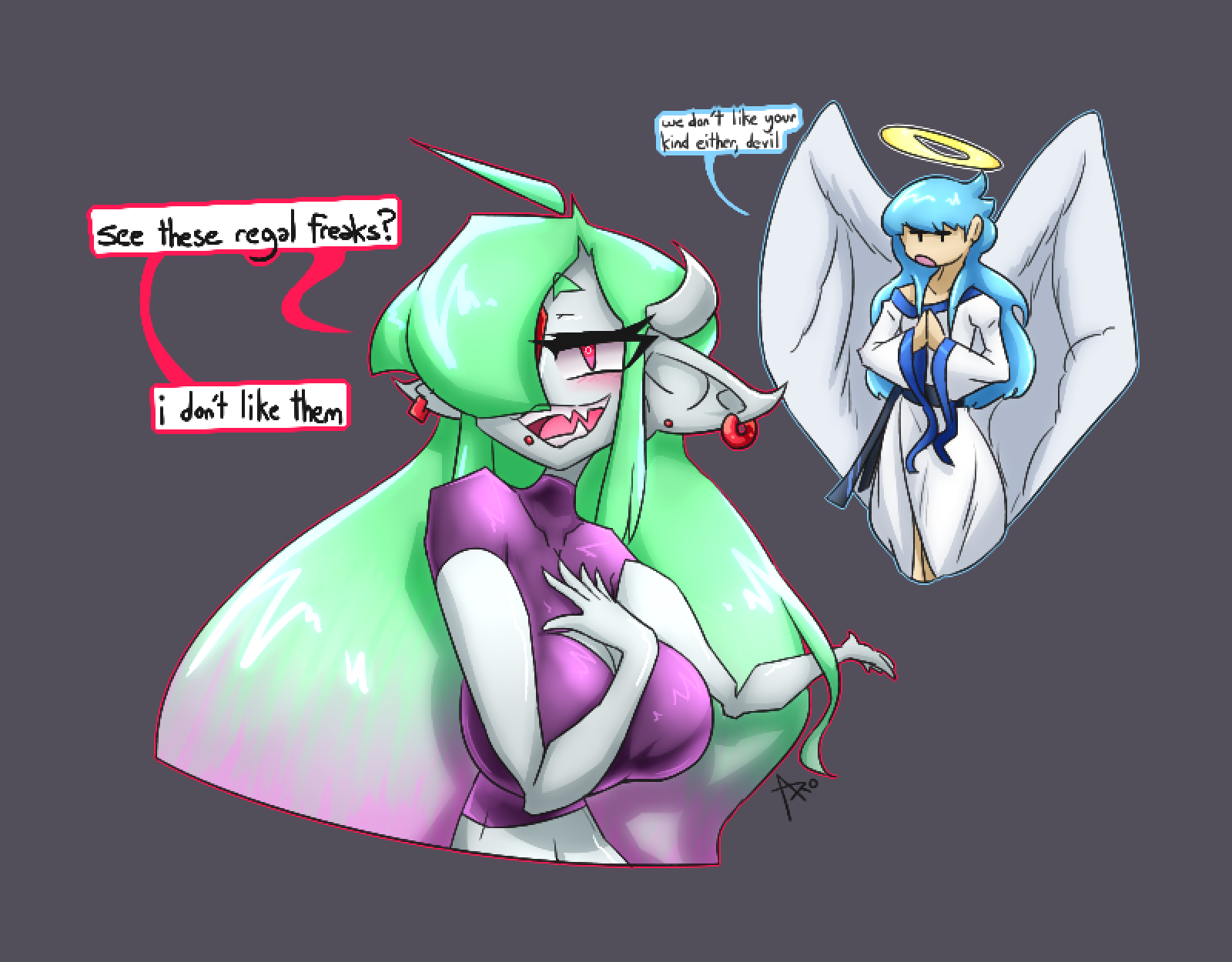 Here we have Era, the demon of misfortune, stating her distaste for angelic creatures of God's creation. Perfected celestial bodies that have no purpose dealing with the corrupt and insane. At least they're both cute tho...Here we have Era, the demon of misfortune, stating her distaste for angelic creatures of God's creation. Perfected celestial bodies that have no purpose dealing with the corrupt and insane. At least they're both cute tho...0 Comments 0 Shares 48 Views
