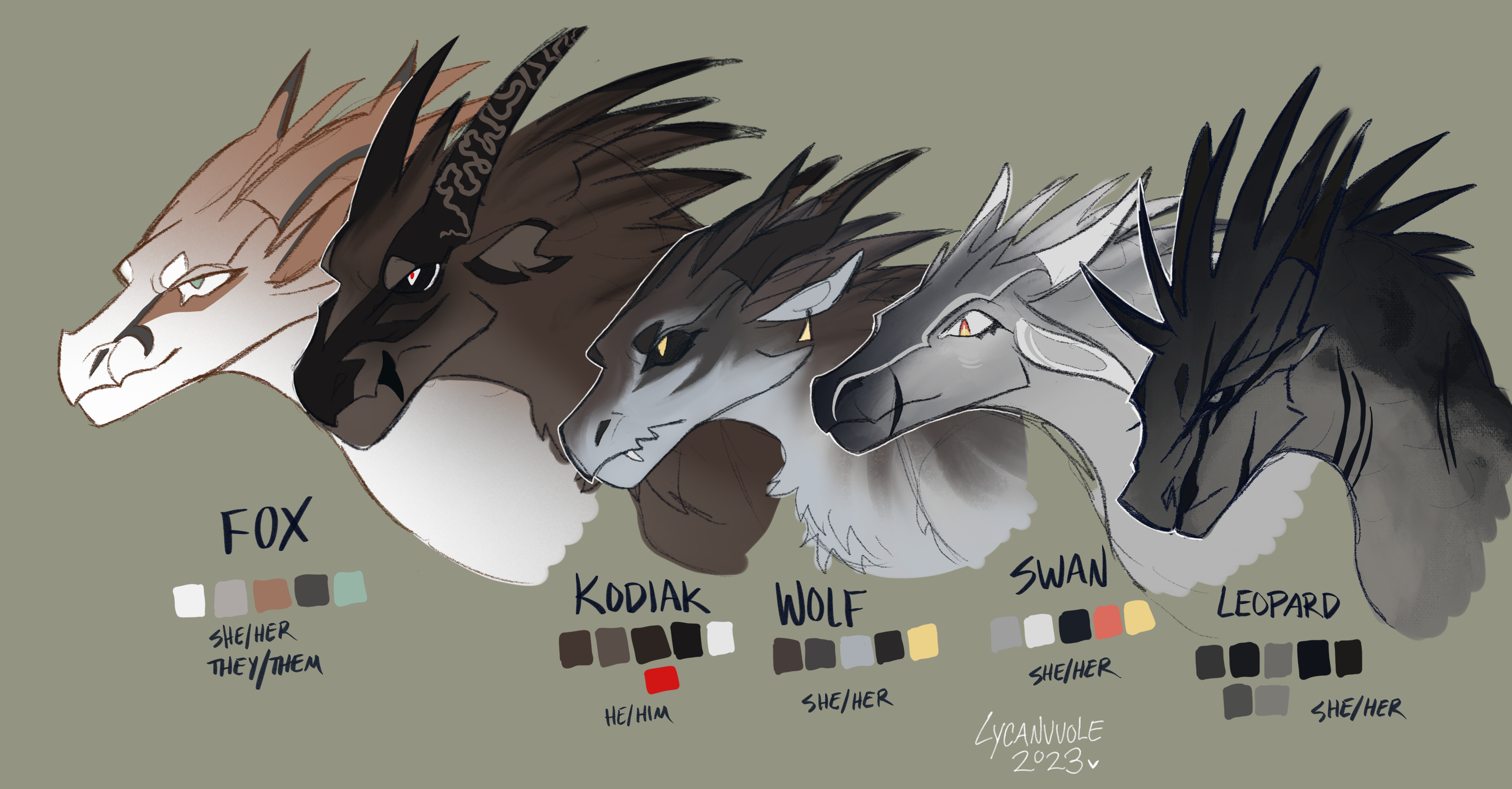 a bunch of dragons who were raised to be loyal to each other. until war breaks out, one has completely vanished to run away with a stranger, leaving the others to fight for their tribe.