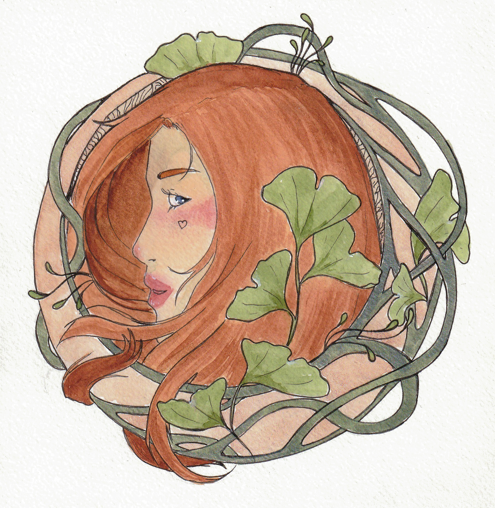 I had many leaves leftover from my cover of the comic so I wanted to use them before I just let them be covered in dust in some corner of my room. I had the amazing JookpubStock for a reference and made this little lovely thing. I had no grand plan, just didn't wanna waste the background paper for the cover and the leaves. Plus I was able to use the golden watercolor here for the skull which was reeeeally fun.