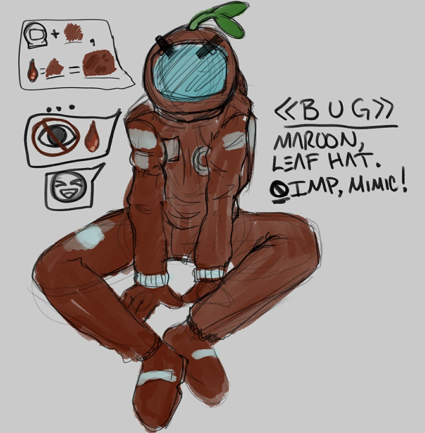 It's not an imposter or a crew, it's actually a mimic that inhabited a suit. It chose maroon because blood doesn't show on maroon as much. ♡This is a sketch of my oc, 《 B U G 》 from among us. It's not an imposter or a crew, it's actually a mimic that inhabited a suit. It chose maroon because blood doesn't show on maroon as much. ♡0 Comments 0 Shares 29 Views -