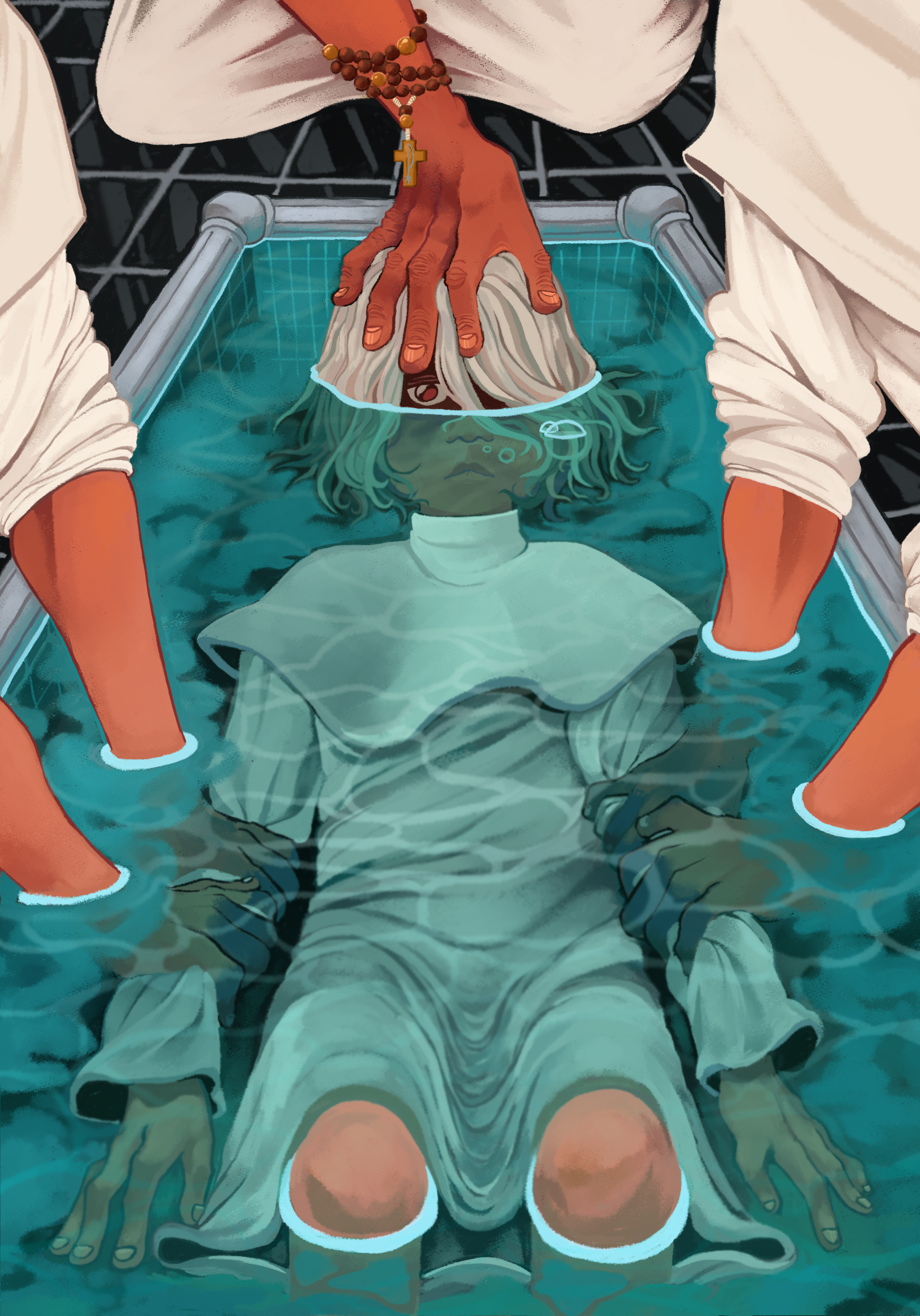 A piece I did for Noir ( [@deathnotezine](https://www.tumblr.com/deathnotezine) ) last year of Near recieving a forced babtism, representing the idea that he lacked agency over his future. Left is the finished piece, and right is a quick process gif of the piece. I had lots of fun making this piece for the Noir zine, and it feels very cool to have it printed in a collection of beautiful creative pursuit!0 Comments 0 Shares 6 Views -