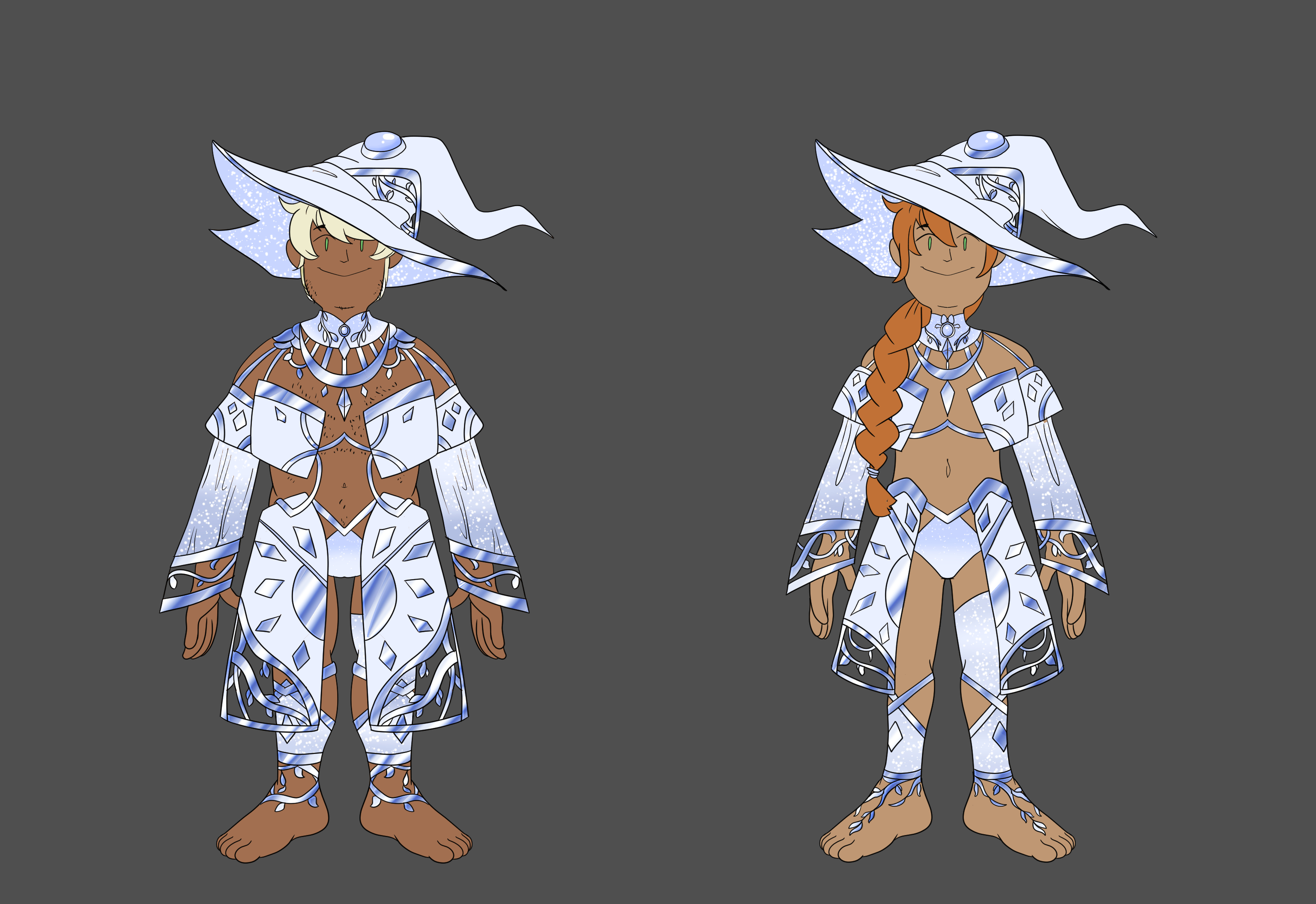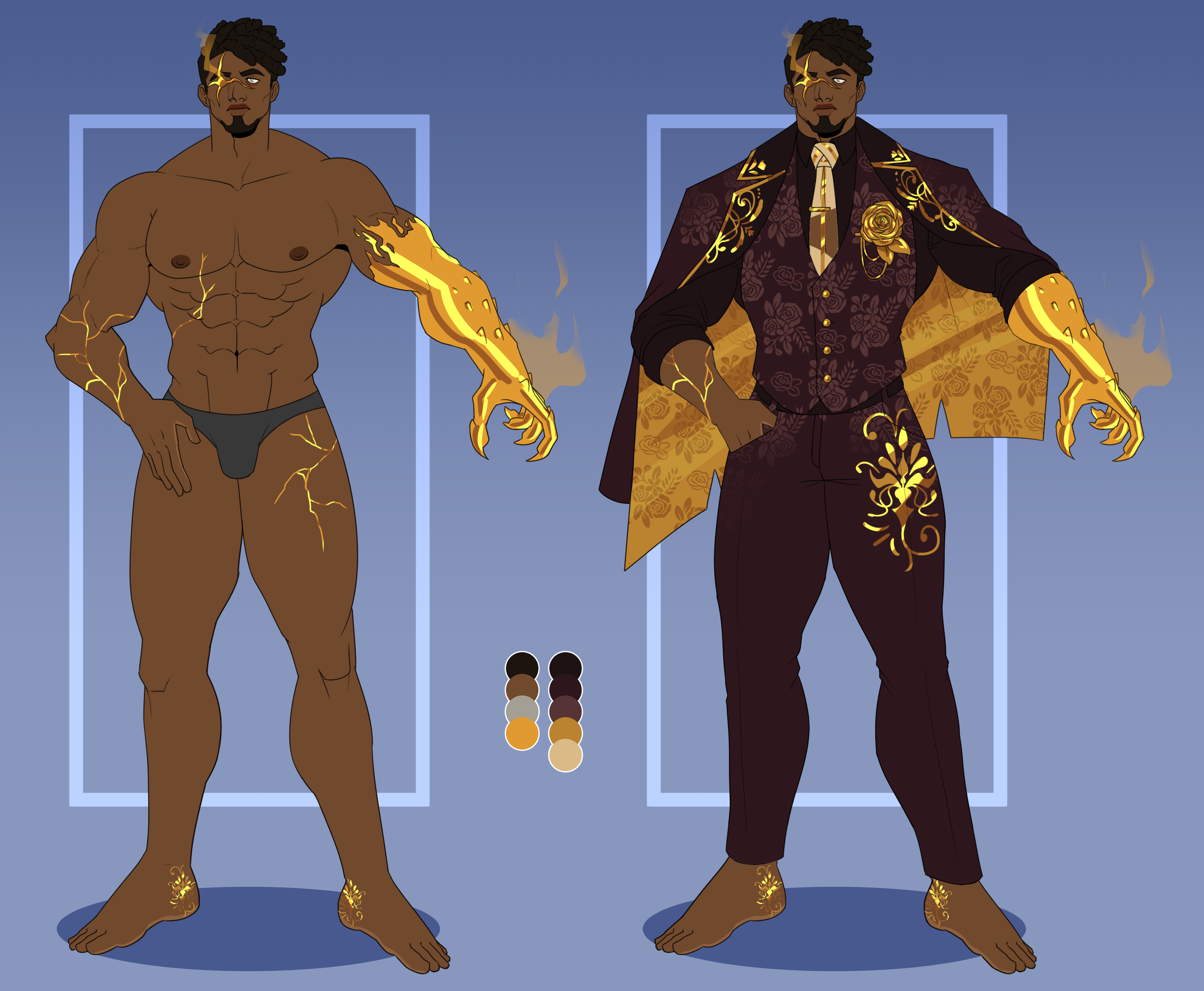 These two characters are just a couple examples of what a fertility mage could look like! The main sketch was done by the amazing Shinkumancer on Twitter, with lines, colors, and details like me.As society evolved from the effects of the radiation event, people had to figure out how best to preserve the population. Now, centuries after, the Fertility Guild is a well-organized system. With their metallic fringed, bedazzled, revealing outfits, they're impossible to miss. These men have the coveted ability to craft artificial wombs in themselves or other men. Should a couple wish to conceive, the mage assigned to them will test both men physically to see which is more capable of holding a child, after which the spell is placed. Or, as some cases happen, a single man can have an audience with a mage, though this generally means the child will grow to be the next generation of fertility mages, with an 80% chance to pass on the specific mutation. Fertility mages have a very strict code hammered out over centuries, and thanks to these efforts, pregnancy fraud and rape-pregnancy are all but nonexistent. These two characters are just a couple examples of what a fertility mage could look like! The main sketch was done by the amazing Shinkumancer on Twitter, with lines, colors, and details like me.0 Comments 0 Shares 12 Views -
