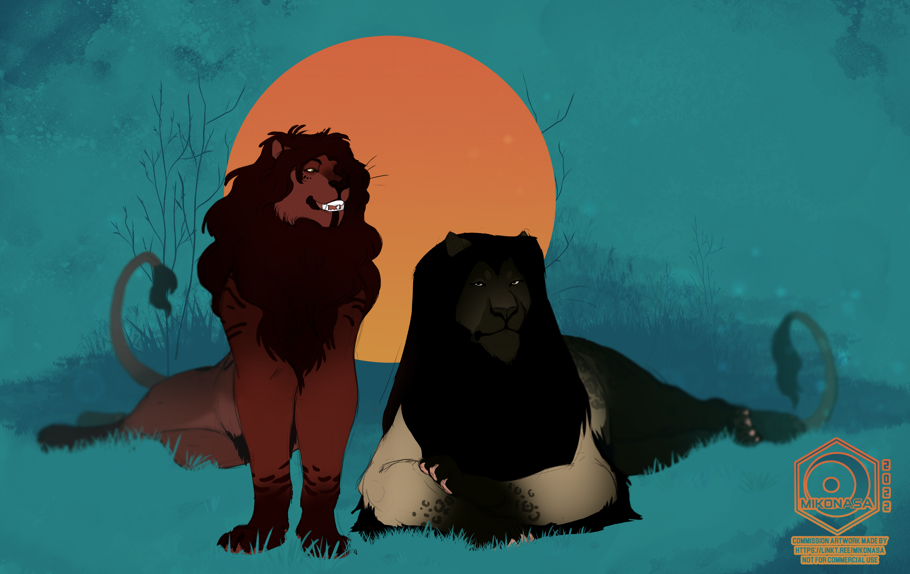 [if interested you can find my commission sheet here!](https://mikonasascommissions.carrd.co)LIONS. i have only ever done lions for commissions like.. 3 times? maybe more that im not remembering. but im glad i got to hone my skills on this pretty boys! Belial and baraka! with baraka on the left and belial on the right commission done for [Xyberferal!](https://www.furaffinity.net/user/xyberferal/) [if interested you can find my commission sheet here!](https://mikonasascommissions.carrd.co)0 Comments 0 Shares 26 Views -