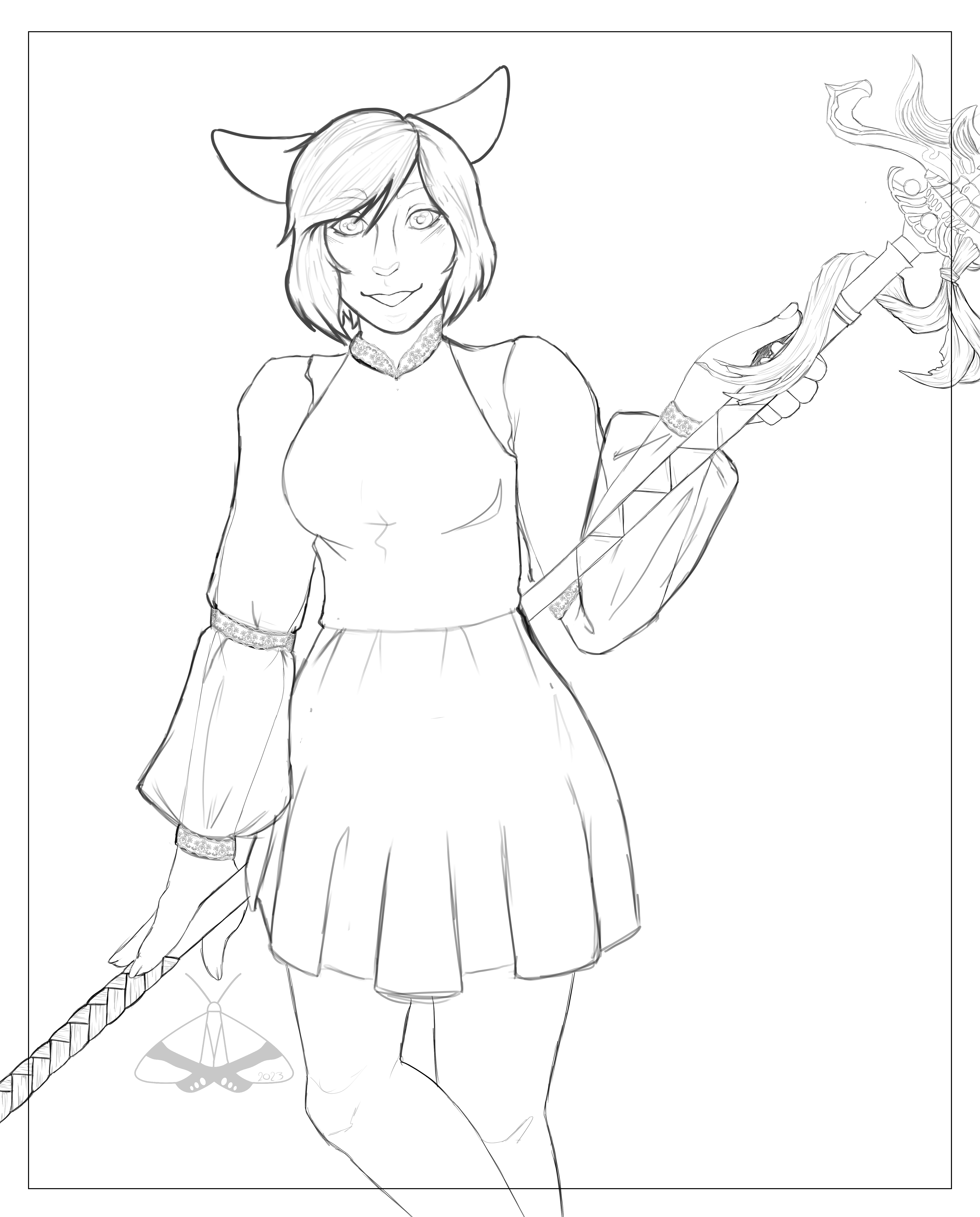 Do not use my art without my permission.funny little meow meow, my miqo'te Nova from ffxiv with the tsukiyomi lance. I'm not good at writing descriptions so yeah heres a sketch of my girl. Do not use my art without my permission.0 Comments 0 Shares 2 Views -