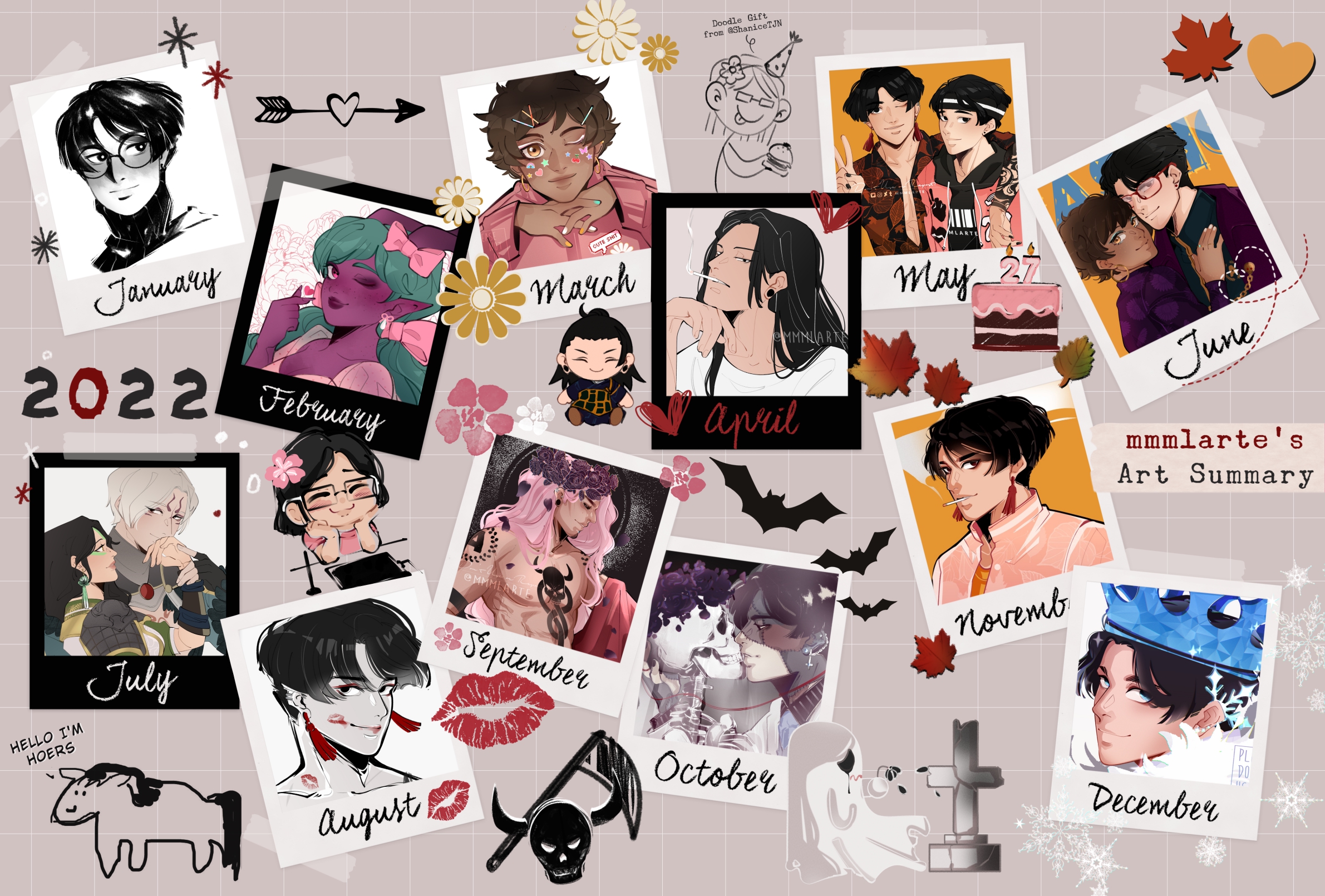 My 2022 art summary & these are my favorite for each month, I hope to illustrate scenery BGs next year lol