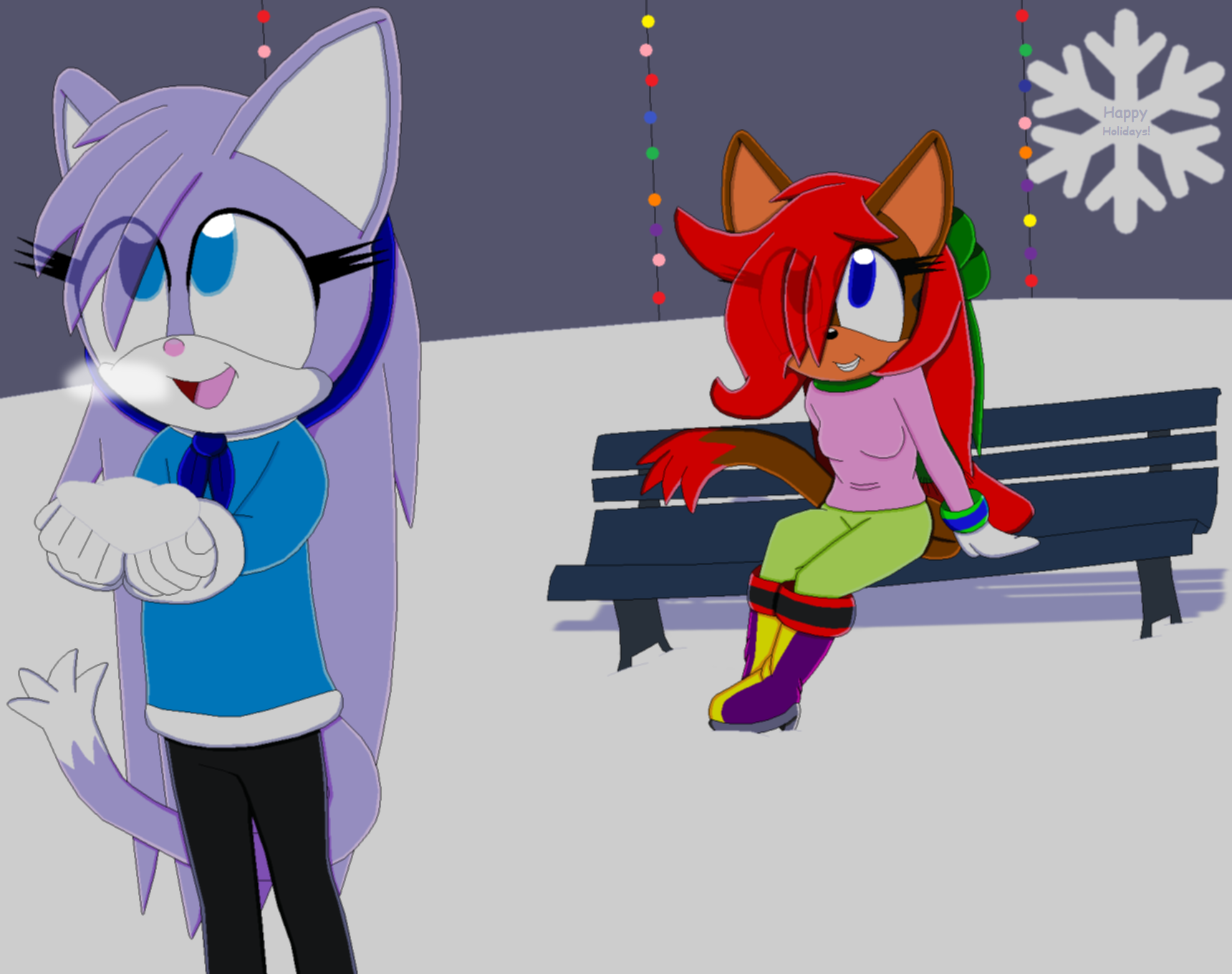 Here's my new piece of the year, and I did a little something different. Instead of the usual characters in Christmas outfits, this is Molly Ketty and Valery in their winter attires enjoying the Christmas snow. Would have included Kerstin in this too, if I had more time.Merry Christmas, folks. Here's my new piece of the year, and I did a little something different. Instead of the usual characters in Christmas outfits, this is Molly Ketty and Valery in their winter attires enjoying the Christmas snow. Would have included Kerstin in this too, if I had more time.0 Comments 0 Shares 3 Views -