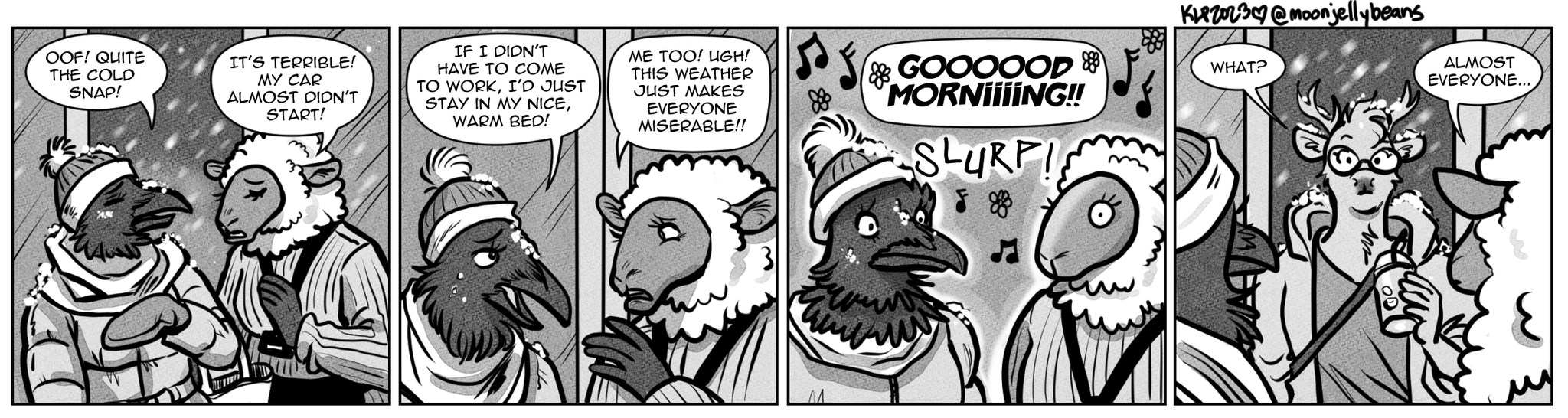I am both a morning, and a winter person. This comic is based off a conversation with my coworkers after a particularly cold snowy day.I am both a morning, and a winter person. This comic is based off a conversation with my coworkers after a particularly cold snowy day.0 Comments 0 Shares 2 Views