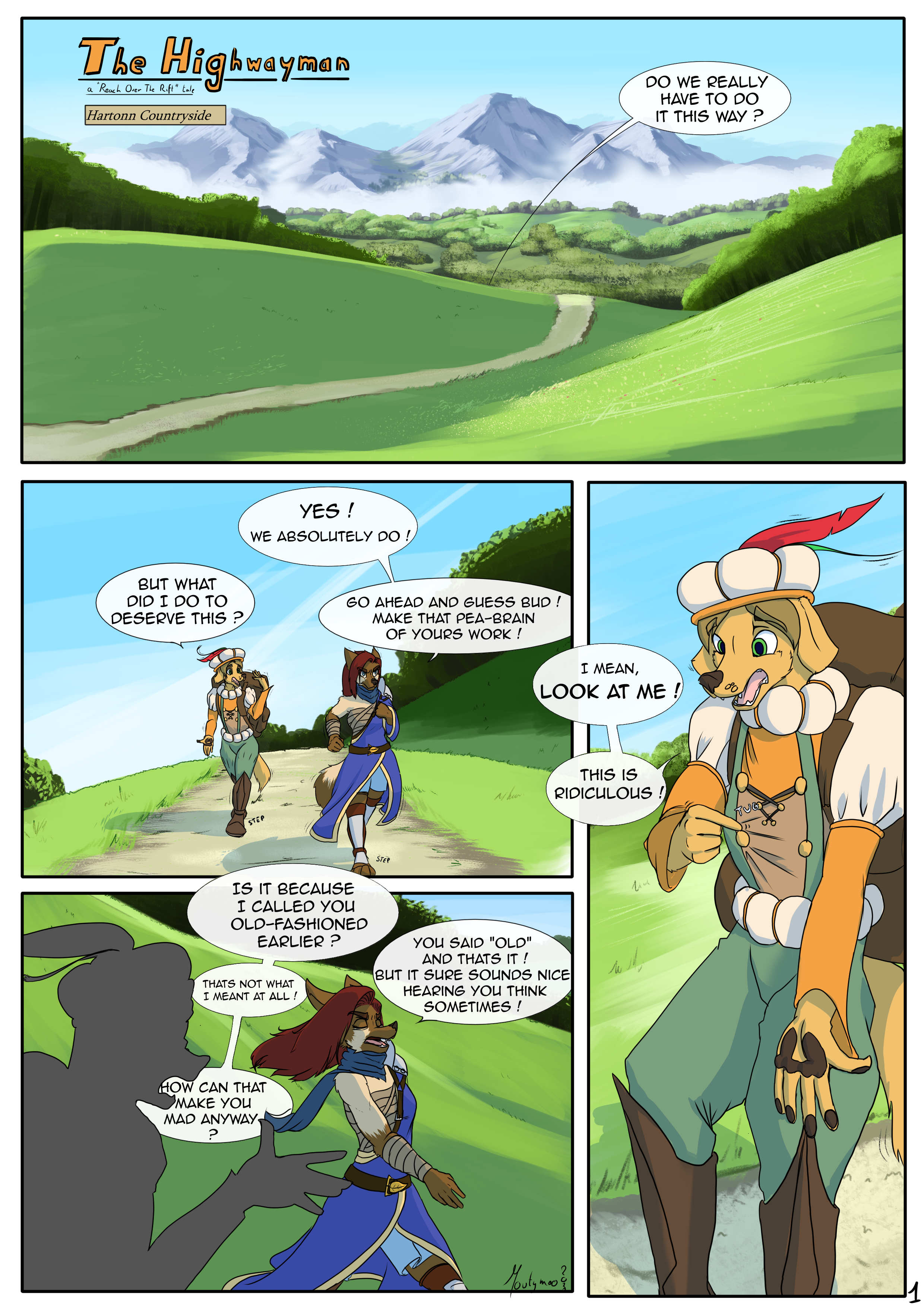 Meet my OCs, actually saying something for once, walking through the hillsides of Hartonn. But where are they going with the boy dressed like that ?-- | Page 1 | [Next >>](https://inkblot.art/post/auZlgVa6zvMGhPUgIN7T) For two years I've been working on a small comic with my characters, so here's the first page ! This one is old ( 2021 ) and doesn't reflect my actual skill. But rather than redo it entirely, I prefer to just post it, so you can see skill actually develop. Meet my OCs, actually saying something for once, walking through the hillsides of Hartonn. But where are they going with the boy dressed like that ?0 Comments 0 Shares 20 ViewsPlease log in to like, share and comment! -