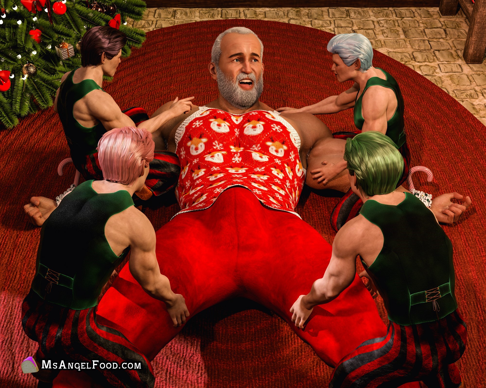 Get 77 high-res images (4k) featuring four tiny elves overpowering their giant, DILF Santa and taking full advantage his vulnerability.