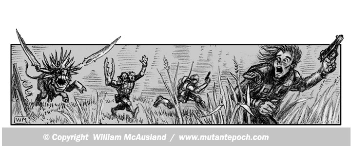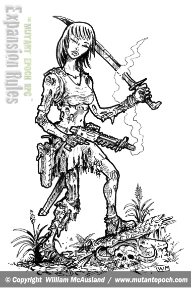 Ink illustration from The Mutant Epoch RPGs Expansion Rules Book. Learn about this game book at https://www.amazon.com/dp/0994923791 or https://www.outlandarts.com/expansionrules.htm