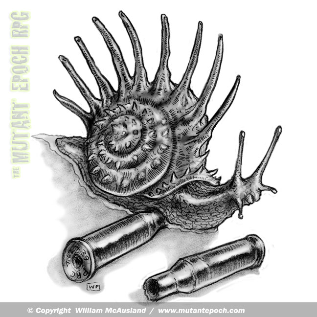 #snail #gastropod #neurotoxin #monster #rpgbook #tme #rpg #ttrpg #mutantepoch #apocalyptic #postapocalyptic #mutants #epoch #wasteland #tabletop #tabletopgame #rpgart #indiegame #indierpg like #fallout #degenesis #gammaworld or #mutantyearzero or #mutantcrawlclassics #mcc #art #ammo #spikes #pencilart #creatureIf you’re character is unlucky enough to fall upon, step on or accidentally grab one of these docile gastropods, and get punctured, and fail a type G hazard check, then you’re in trouble. While the neurotoxin doesn’t kill the victim, it does slow them to half speed and only allows them to act every second turn. In the ruins, that usually means death. [https://www.mutantepoch.com]() #snail #gastropod #neurotoxin #monster #rpgbook #tme #rpg #ttrpg #mutantepoch #apocalyptic #postapocalyptic #mutants #epoch #wasteland #tabletop #tabletopgame #rpgart #indiegame #indierpg like #fallout #degenesis #gammaworld or #mutantyearzero or #mutantcrawlclassics #mcc #art #ammo #spikes #pencilart #creature0 Comments 0 Shares 366 Views -