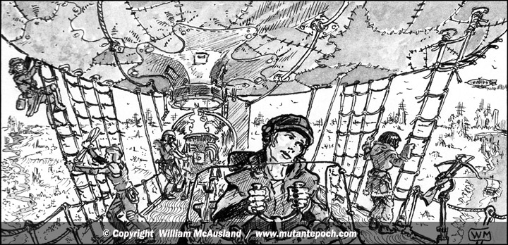 This character served aboard an airship and took on the caste title of aeronaut. So too, he or she gained considerable knowledge of their own region, having visited most barter towns, digger forts, trade outposts, farming villages and any sprawling slum cities which might exist in the area. Likewise, this balloonist has memorized the details of the terrain below their vessel, including the rivers, old war zones, ruin sites, swamps, impassable mutant forests, and treacherous mountains and badlands.