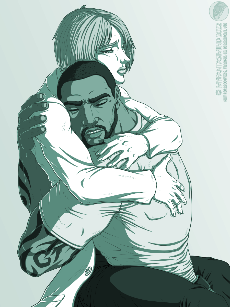 Gabe & Emerson © Anna H -- Art © MyFantasiMind 2022An overdue Monocolor commission for Anna H. of her characters, Gabe and Emerson, sharing a warm embrace. Been a while since I made an alternate pose like that of the Gears Of War ones I did long ago, so it was fun to do it again. Enjoy! Gabe & Emerson © Anna H -- Art © MyFantasiMind 20220 Comments 0 Shares 30 Views -