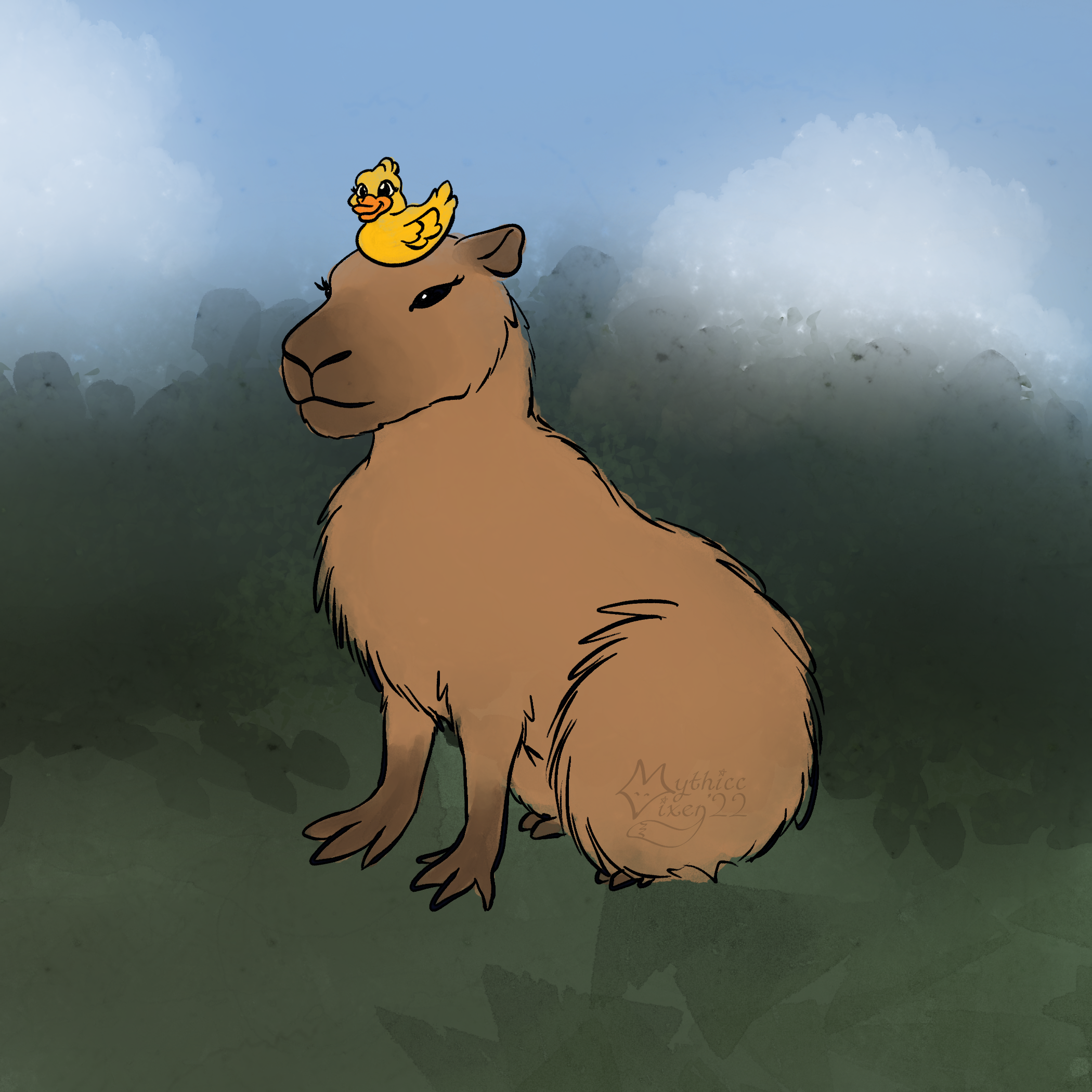 Prompted by followers, I doodled a capybara with a rubber duck on its head.