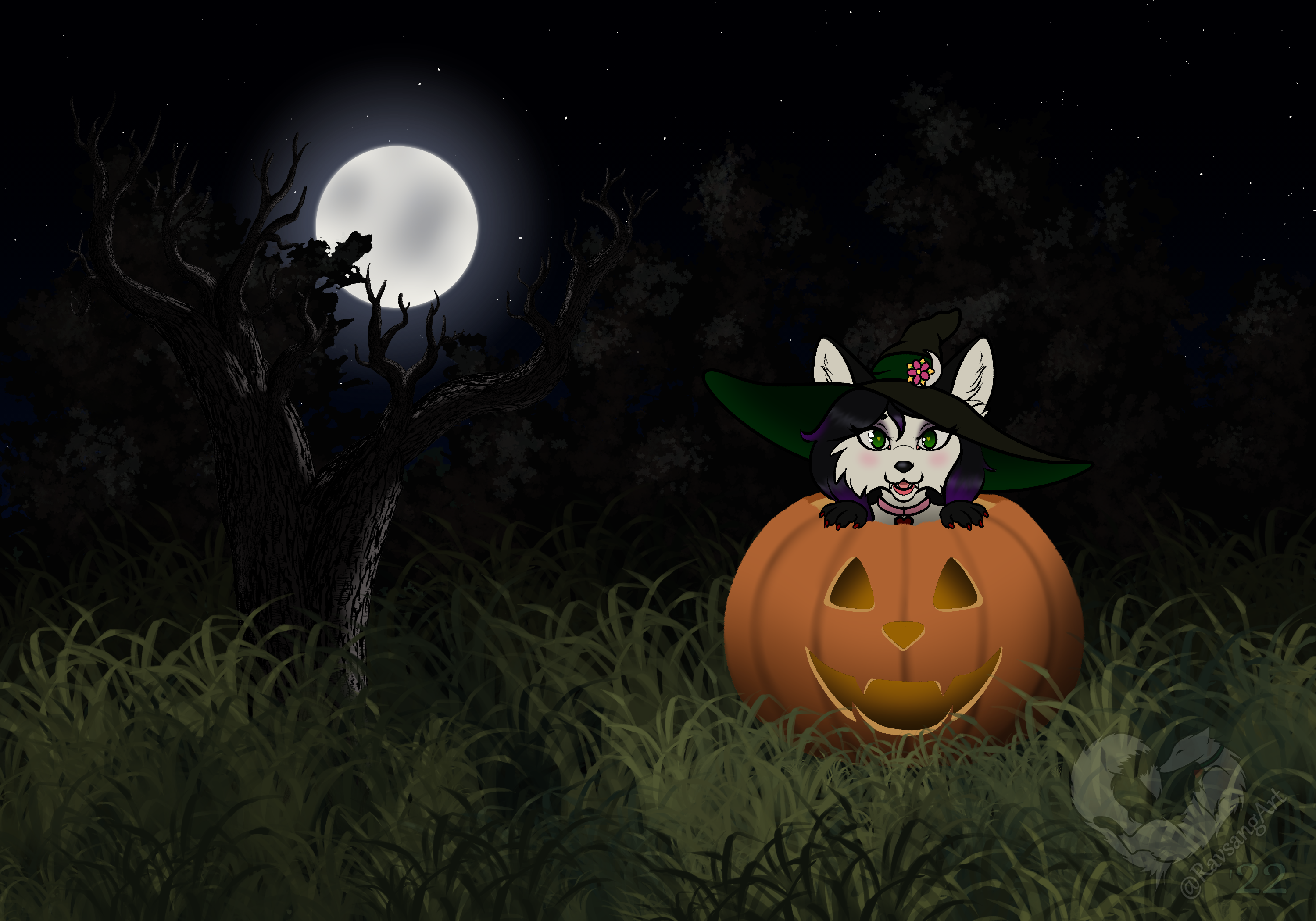 A Halloween Chibi YCH I did featuring my fursona, Lass.