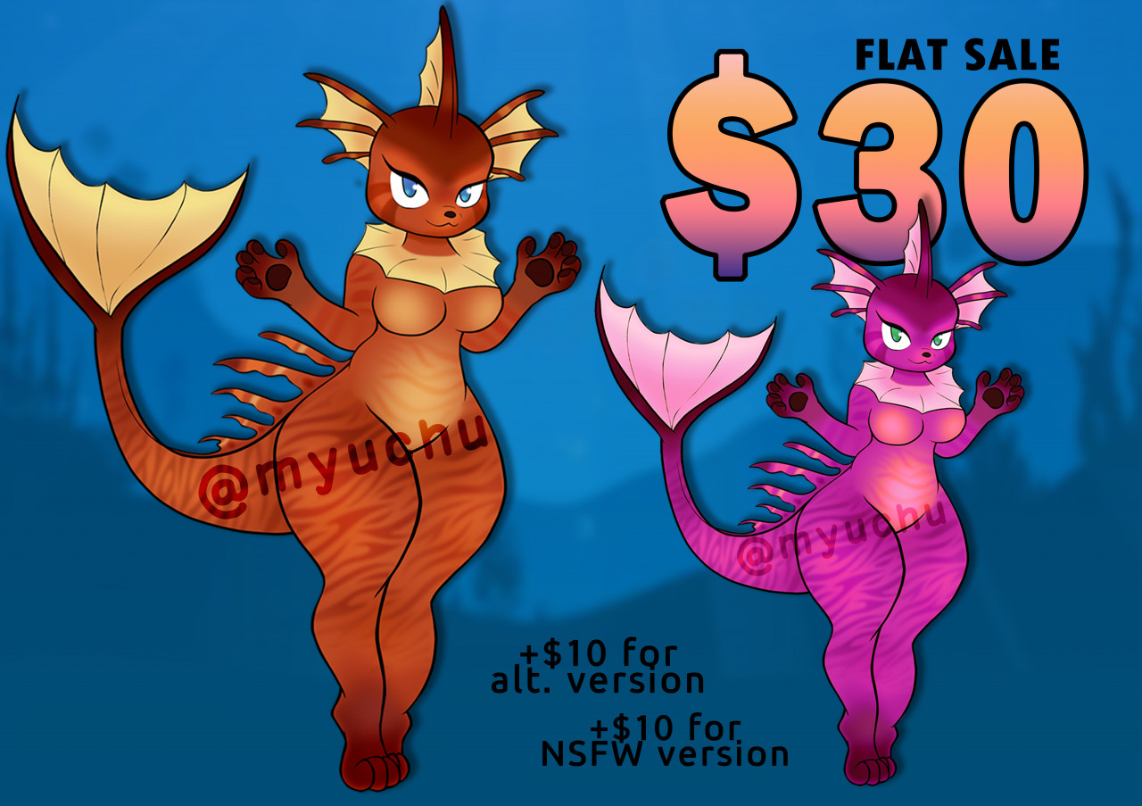 DO NOT RESELL FOR MORE THAN YOU PAID! Credit to me is much appreciated! :)🐠 LION FISH VAPOREON ADOPTABLE 🐠 FLAT SALE :$30 +$10 for alt version +$10 for NSFW version (I accept USD via paypal!) Comment or dm me to claim! After payment is received I will send you the full resolution png of the character with no watermarks! DO NOT RESELL FOR MORE THAN YOU PAID! Credit to me is much appreciated! :)0 Comments 0 Shares 27 Views -