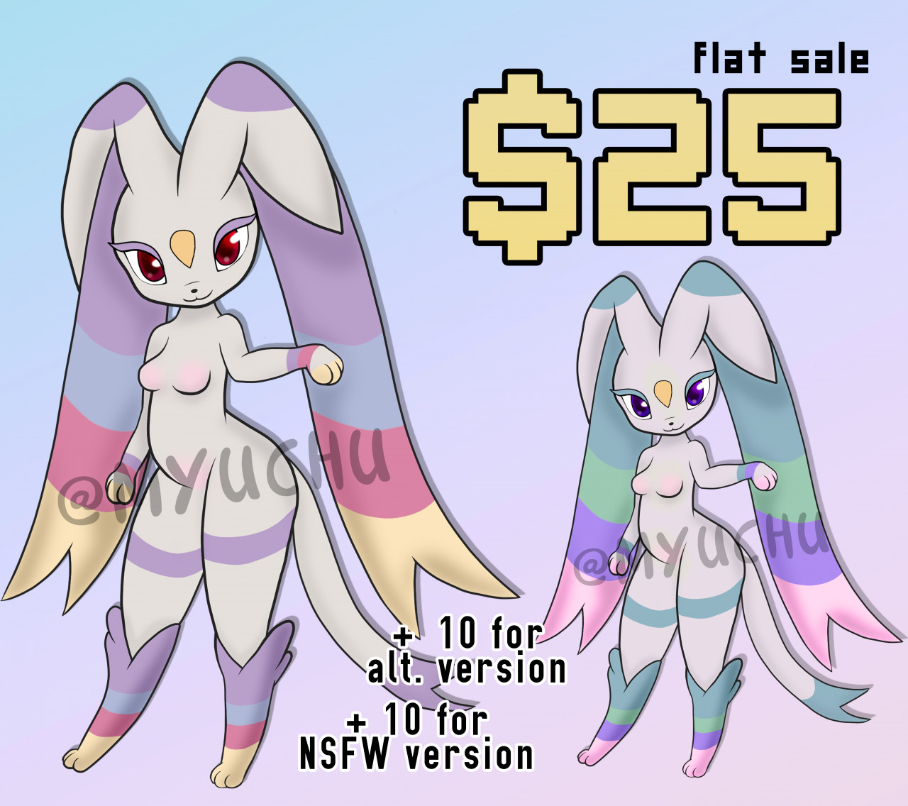 DO NOT RESELL FOR MORE THAN YOU PAID! Credit to me is much appreciated! :)🥋 MIENSHAO/LOPUNNY FUSION ADOPTABLE 🥋 FLAT SALE :$25 +$10 for alt version +$10 for NSFW version (I accept USD via paypal!) Comment or dm me to claim! After payment is received I will send you the full resolution png of the character with no watermarks! DO NOT RESELL FOR MORE THAN YOU PAID! Credit to me is much appreciated! :)0 Comments 0 Shares 27 Views -