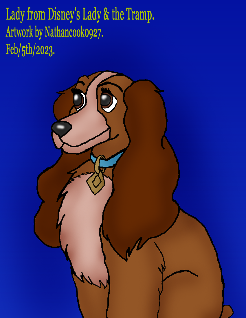 I'd wanted to work on a picture of Lady from Disney's Lady & the Tramp and finally got to doing it since it's been awhile since I've done any artwork lately.