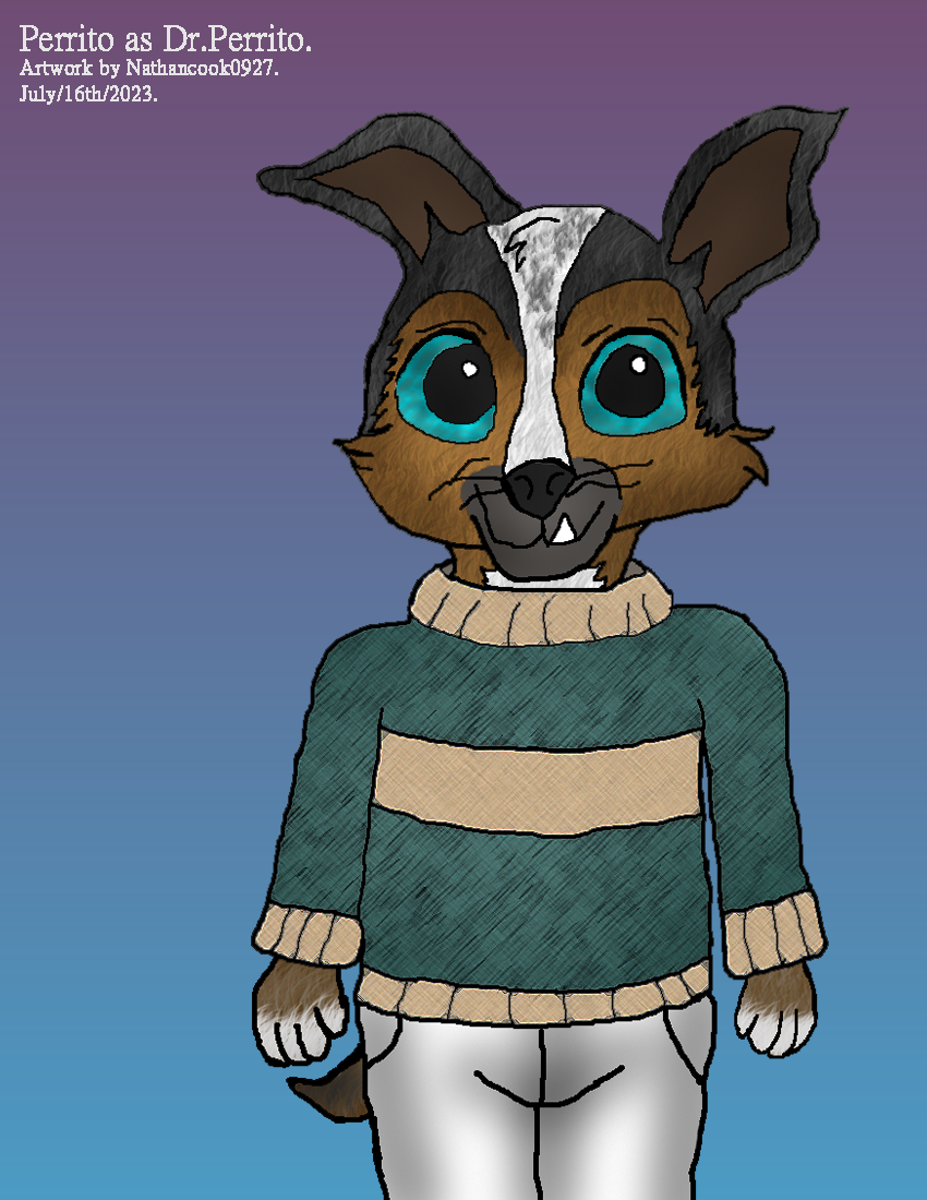 I'd work on this artwork during the Month as having an idea of a therapist for my Merdog in San Franisco Story, So I'd picked Perrito from Puss In Boots the Last Wish to be a therapist since he was known to be Puss In Boot's therapy dog, But in my Story he is a therapist trying to help Charlie who is going under therapy to forget about his time when he'd jump off the ferry boat as a Pup and that there no such things as Merdogs and that it was all in his head, unaware that they do exist.