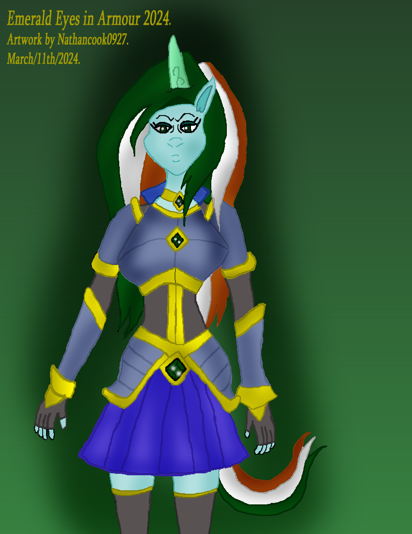 Emerald Eyes Belongs to Me Nathancook0927.I'd got to work on My MLP Villainess OC Emerald Eyes in a New Outfit of Armour for 2024. MLP Belongs to Hasbro. Emerald Eyes Belongs to Me Nathancook0927.0 Comments 0 Shares 74 Views -