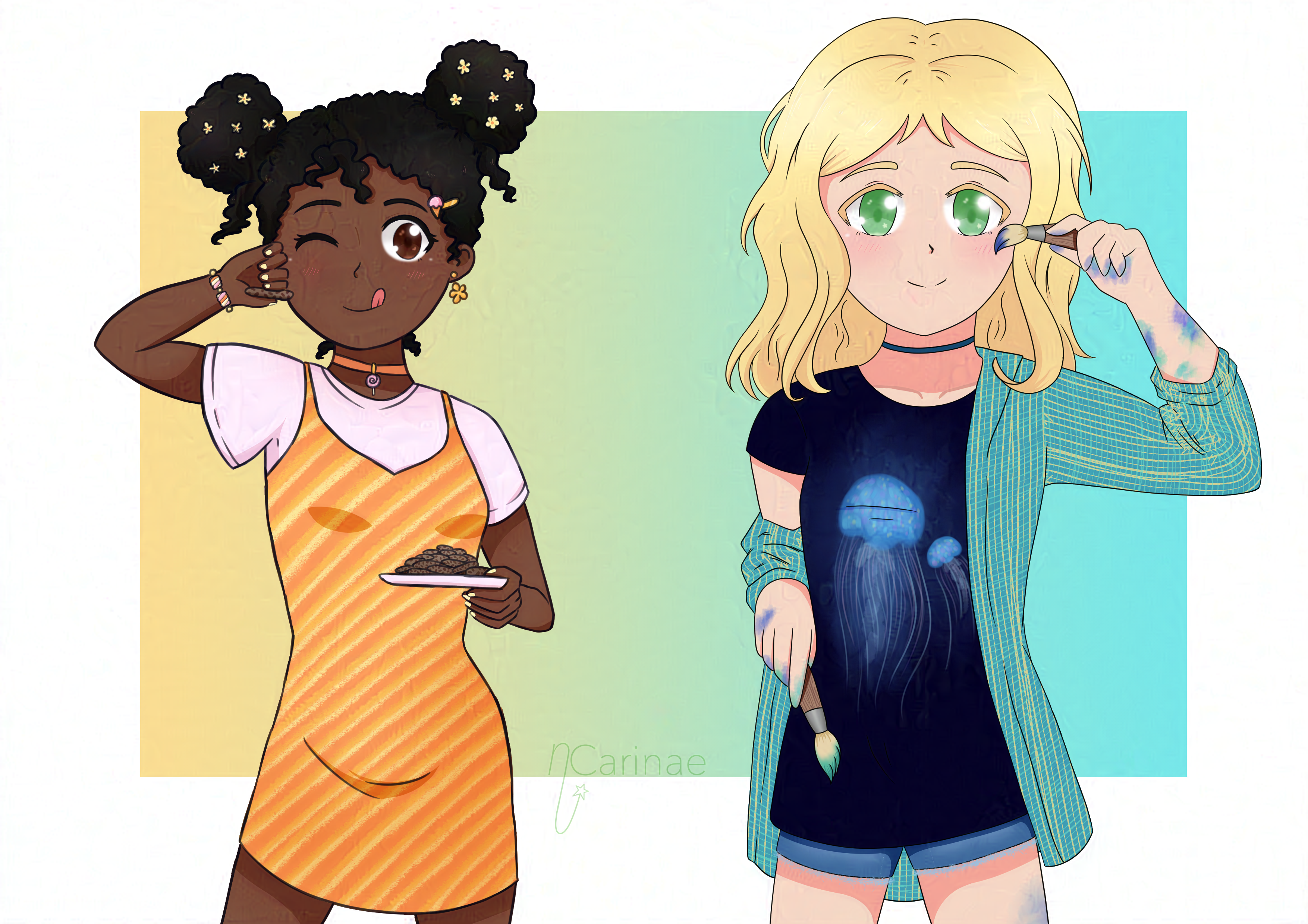 (January, 2019) My OCs Poppy and Estela (in respective order). I am writting a novel about them So I'm gladly introduce them