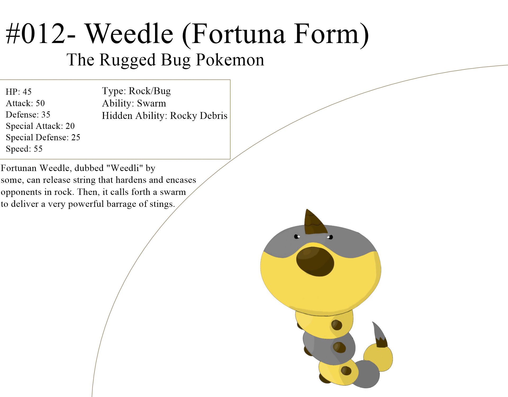 Rock/Bug type Weedle variant!Rock/Bug type Weedle variant!0 Comments 0 Shares 29 Views