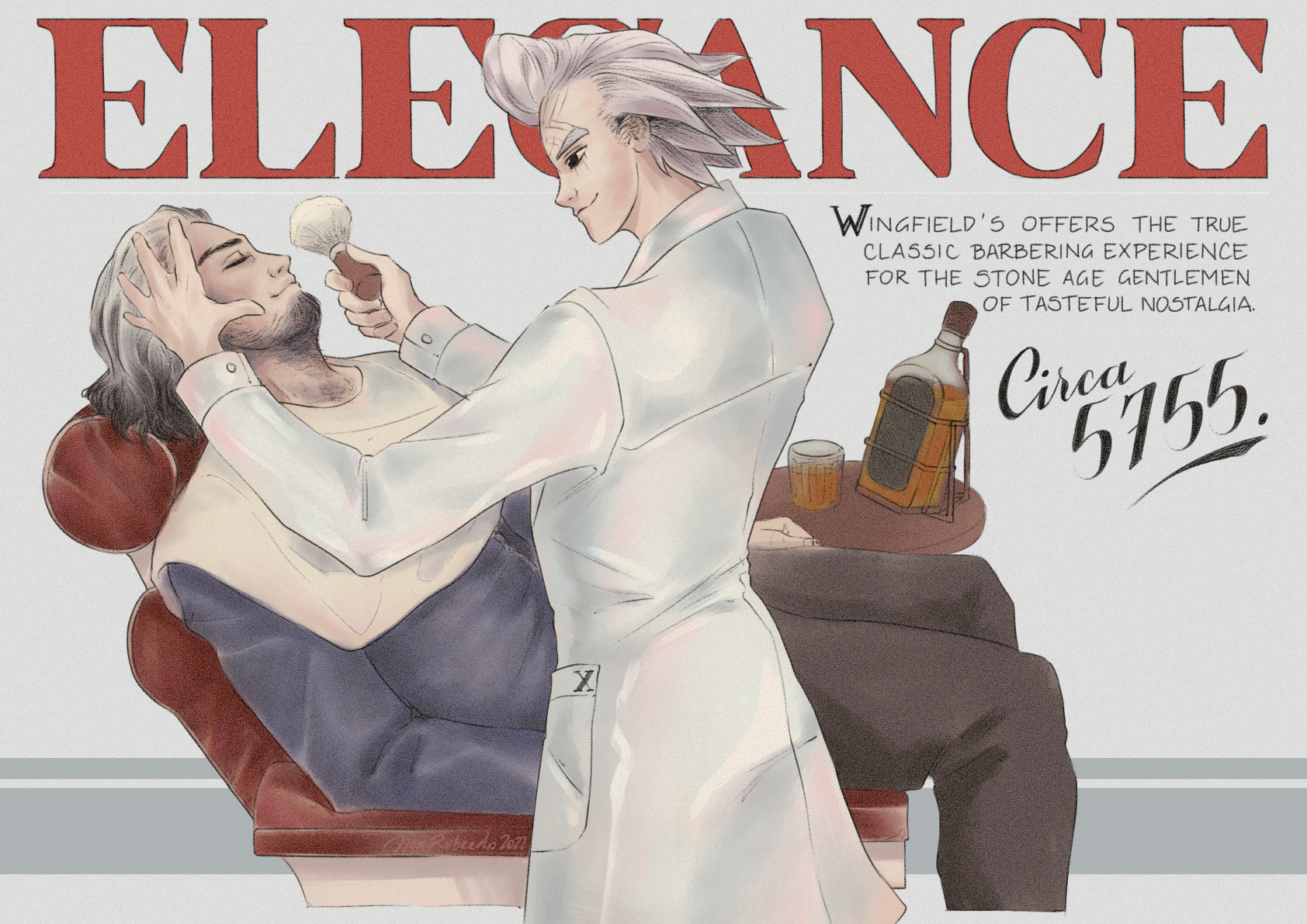 The barber AU I wanted to make for these two. Anime hair logic aside, I love to think Xeno has some strong styling abilities and made his own pomade for his pomp because the others felt wrong. And Byakuya somehow lives (i'm making hand waving gestures as i speak,)The barber AU I wanted to make for these two. Anime hair logic aside, I love to think Xeno has some strong styling abilities and made his own pomade for his pomp because the others felt wrong. And Byakuya somehow lives (i'm making hand waving gestures as i speak,)0 Comments 0 Shares 1 Views