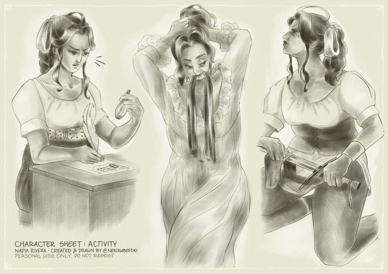 I offer commissions with this kind of sheets, both the descriptive type and the activity/mood type.Bringing another old piece. My design for N has changed quite a bit since, but I still feel proud of this sheet. I offer commissions with this kind of sheets, both the descriptive type and the activity/mood type.0 Comments 0 Shares 1 Views -