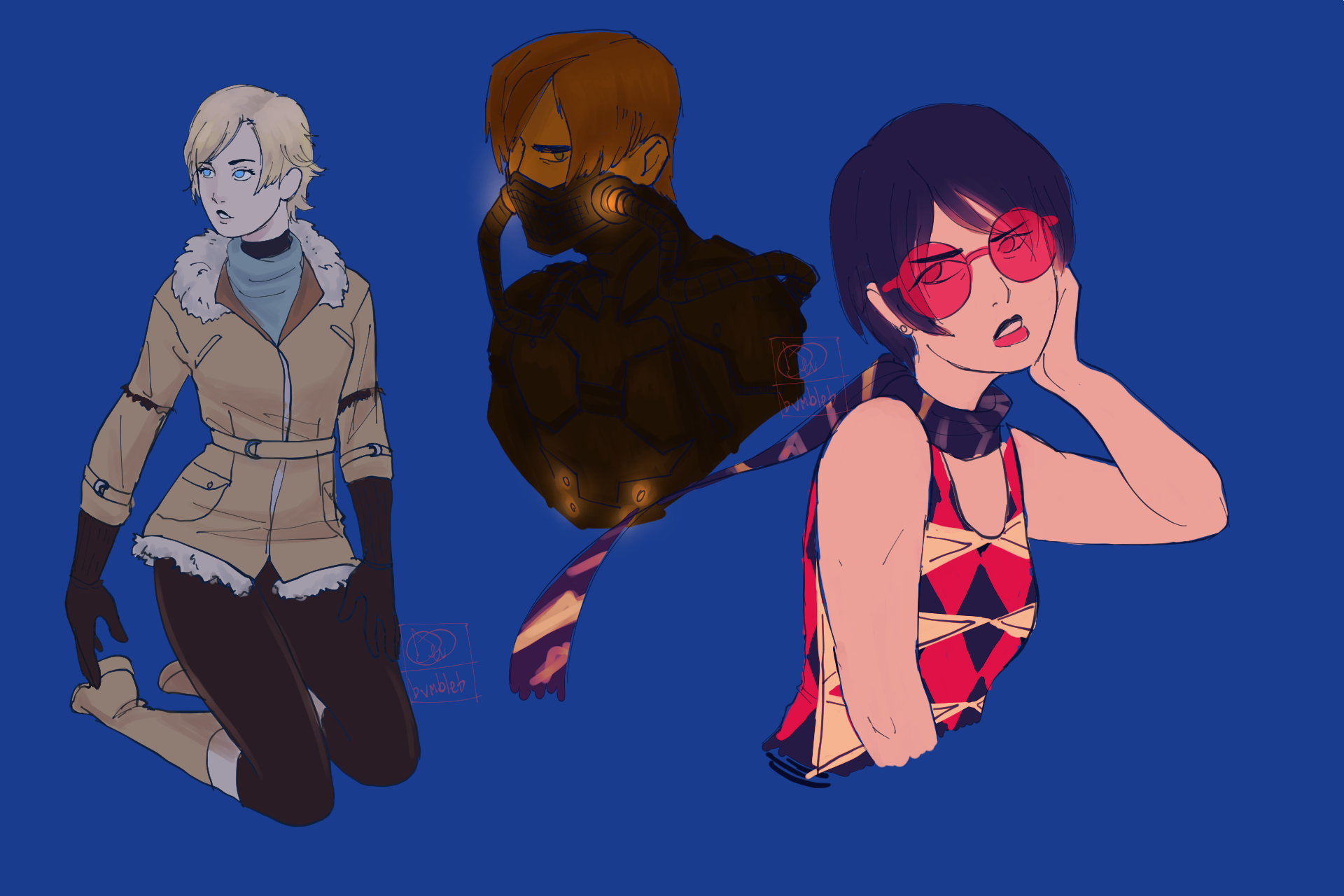 some fanart doodles of sherry birkin, leon kennedy, and ada wong