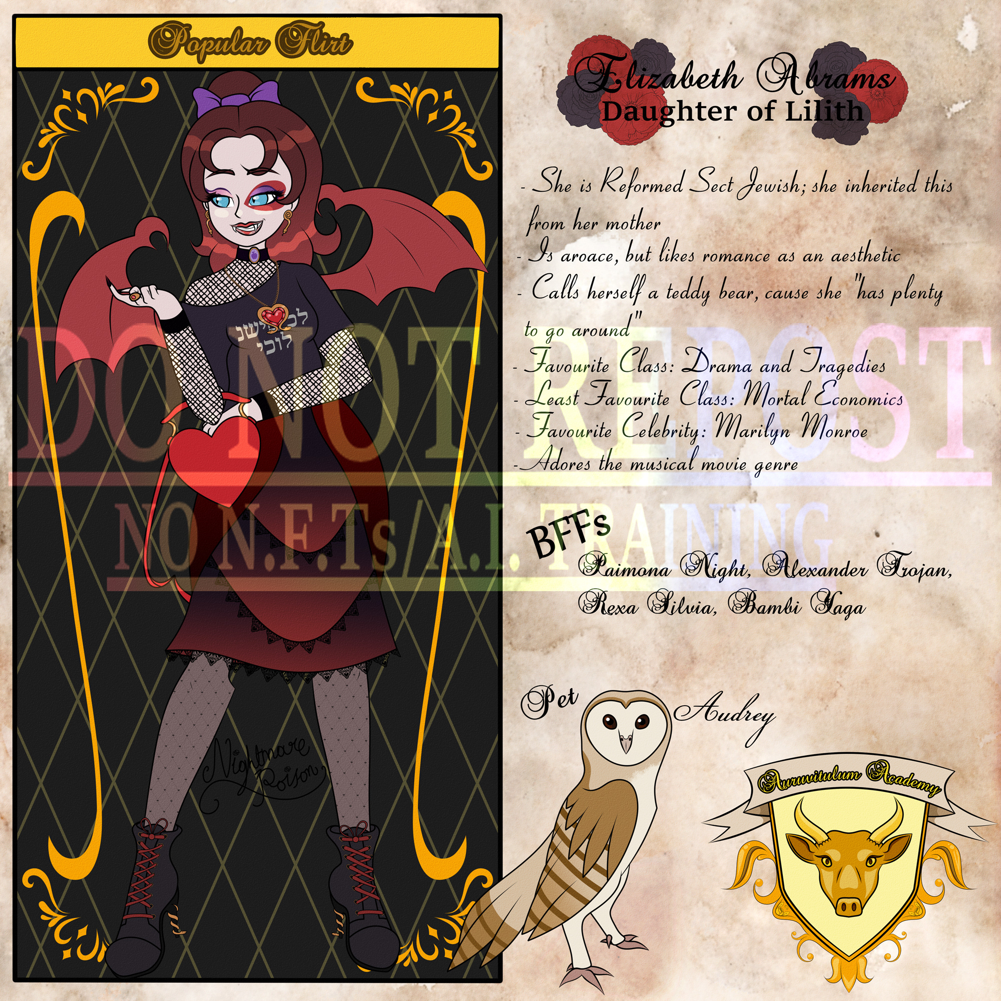 Forgot to upload this girl, so here she is! Her design is a collaboration with my Tumblr mate [Lolohe12](https://www.tumblr.com/lolohe12), who also helped with aspects of Elizabeth's personality and backstory, especially in regards to Jewish traditions and lore.Forgot to upload this girl, so here she is! Her design is a collaboration with my Tumblr mate [Lolohe12](https://www.tumblr.com/lolohe12), who also helped with aspects of Elizabeth's personality and backstory, especially in regards to Jewish traditions and lore.0 Comments 0 Shares 25 Views